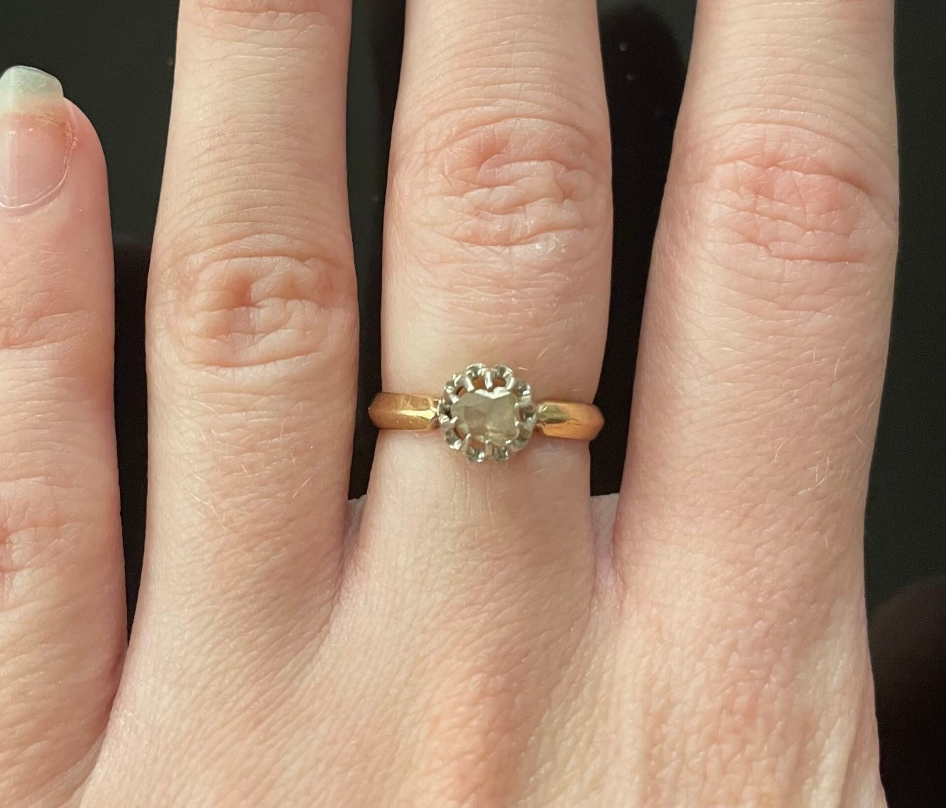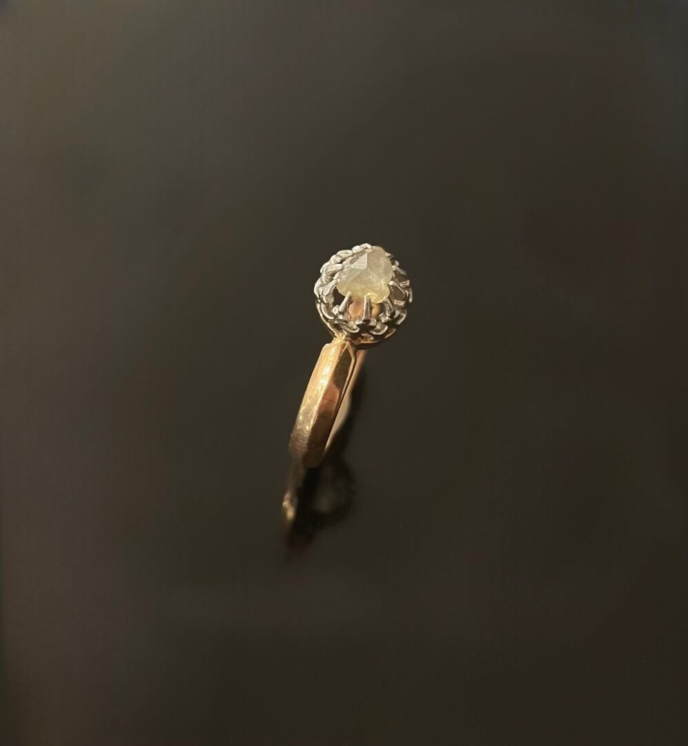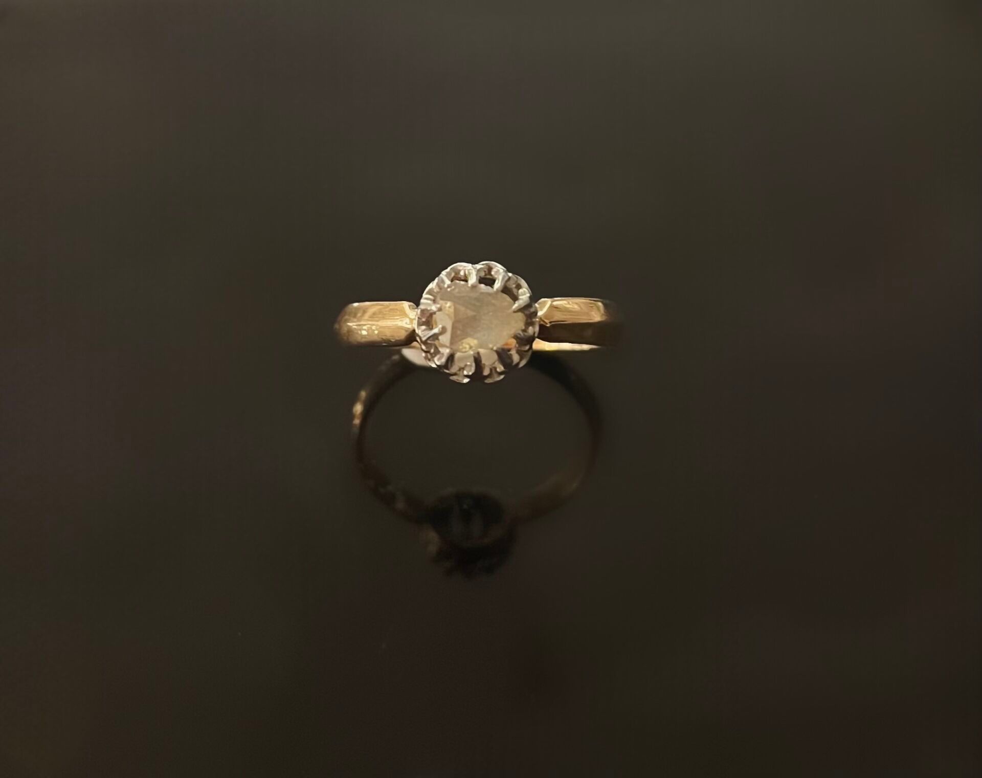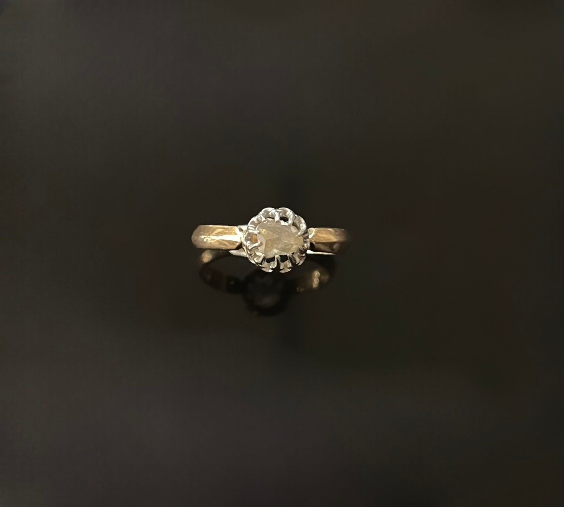 BAGUE solitaire en or jaune et or gris (750) ornée d'un brillant en serti griffe