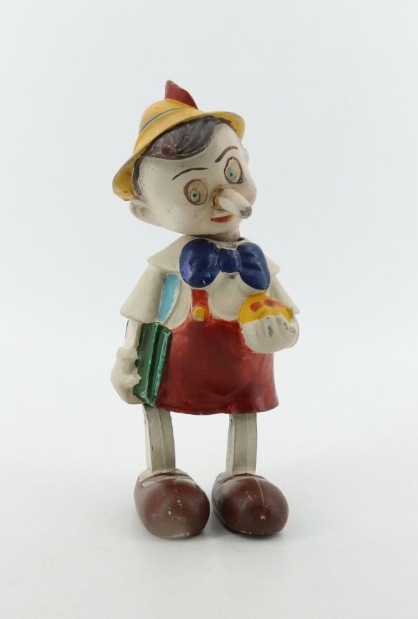 Automate à clef Pinocchio en composition et métal, années 1940 Hauteur : 19 cm (nez cassé-collé)