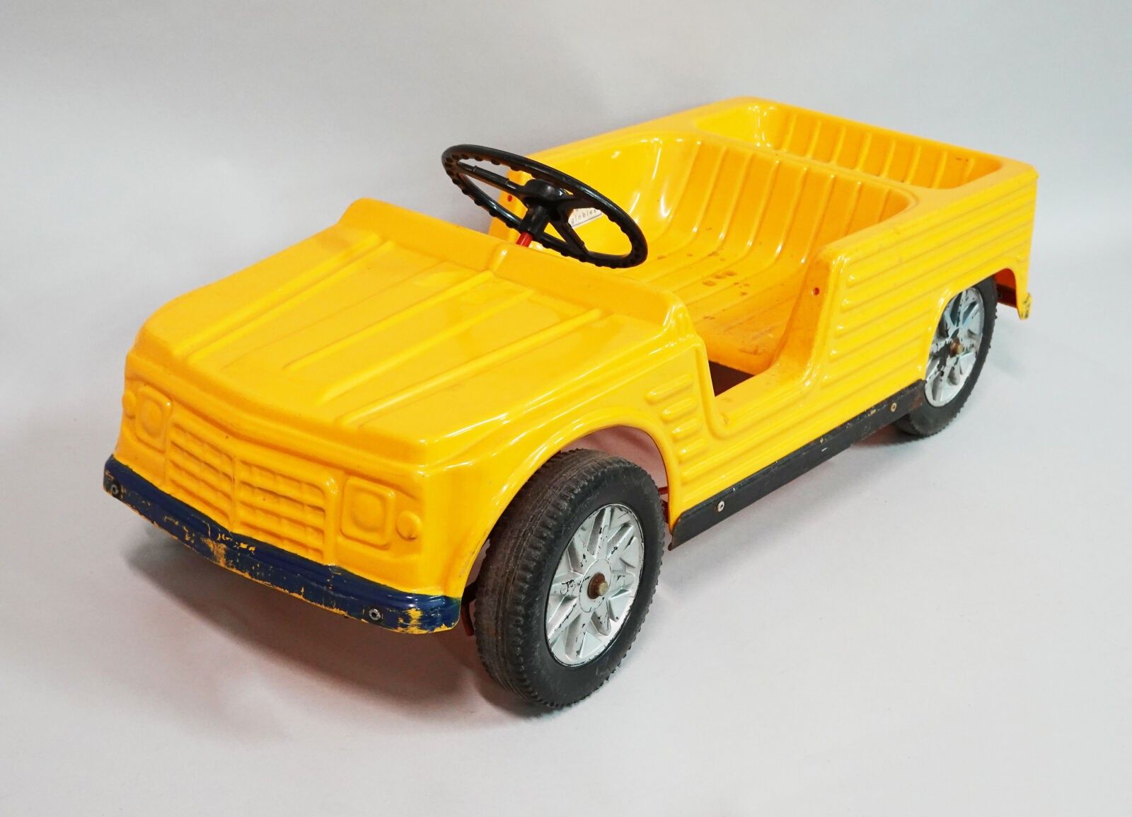 MG (MORRELET GUERINEAU) Voiture à pédales Méhari en plastique jaune Longueur : 90 cm (traces d'usure)