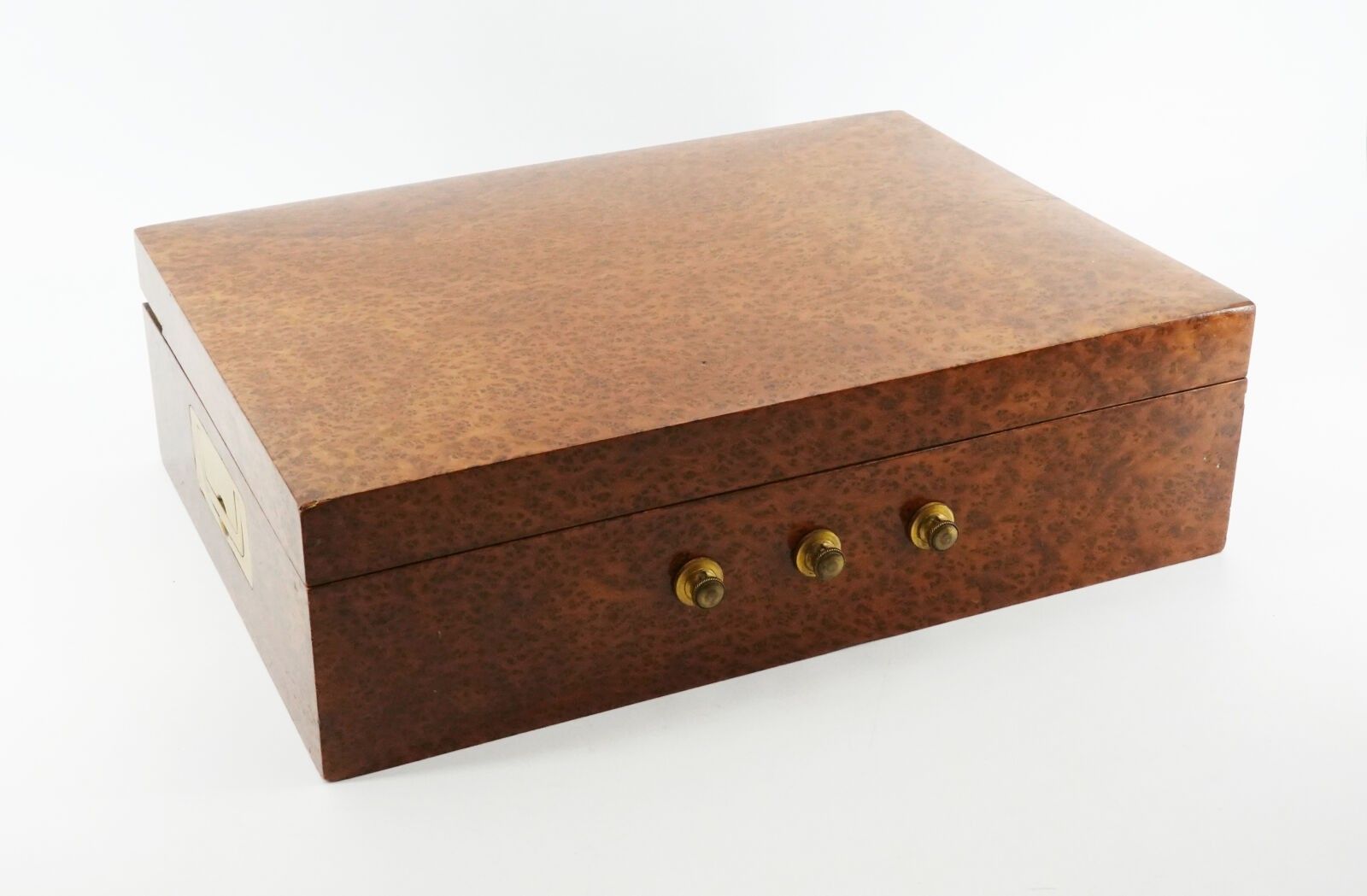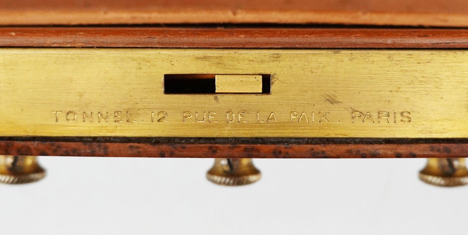TONNEL Cave à cigares en placage de loupe de thuya, signée TONNEL 12 rue de la paix à Paris 10 x 35 x 25 cm