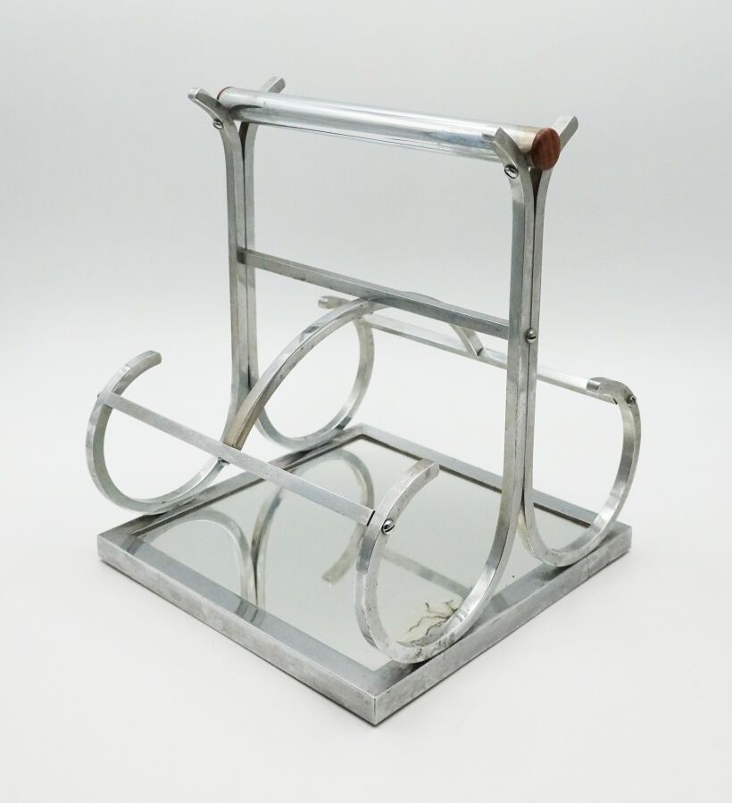 Jacques ADNET (1900 - 1984), attribué à Porte-bouteilles en métal chromé à fond de miroir Hauteur : 28 cm