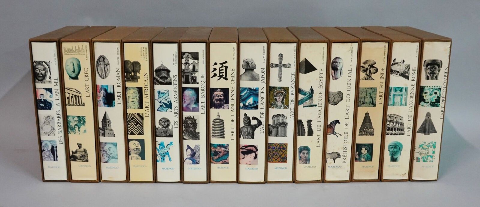 MAZENOD Lot de quatorze volumes avec emboîtage : histoire de l'art de la préhistoire, antiquité, Moyen-Age, art premier, Asie, etc.