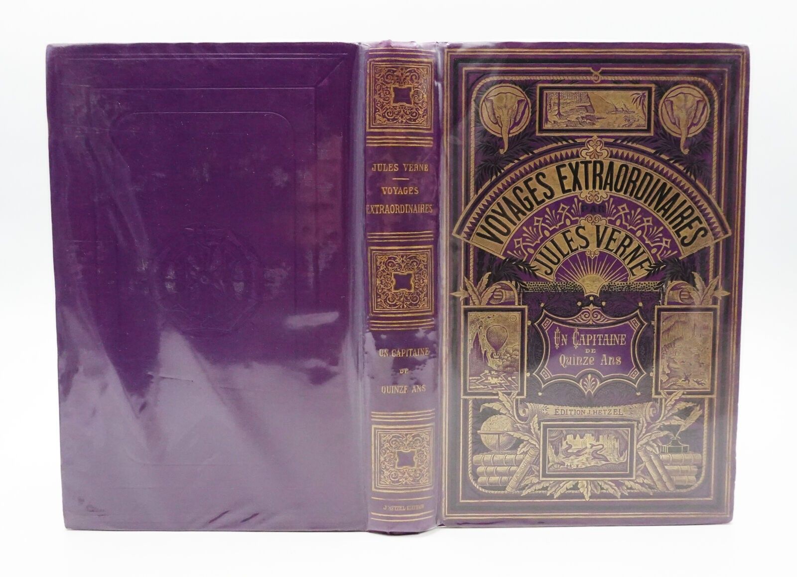 Cartonnage percaline éditeur violet aux deux éléphants. Deuxième édition