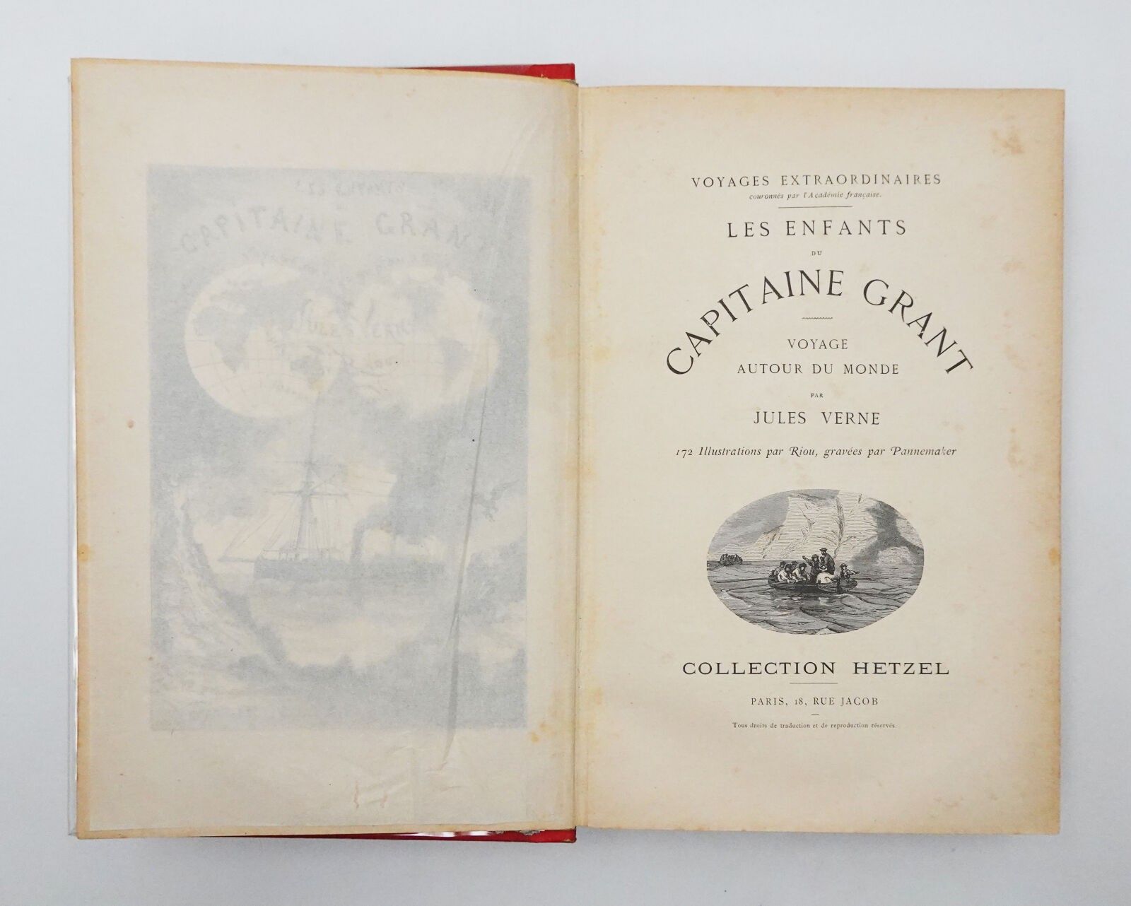 Jules VERNE. Voyages Extraordinaires. Les enfants du Capitaine Grant. Collection HETZEL Cartonnage percaline éditeur rouge, dos à l'ancre (rousseurs)