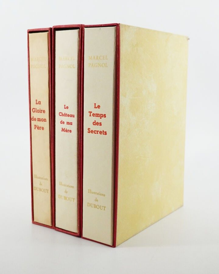 Marcel Pagnol. Souvenirs d'enfance. Editions Pastorelly, à Monte-Carlo. Illustrations de Dubout. 3 Tomes : Le Château de ma Mère, La Gloire de mon Père, Le temps des secrets. Exemplaires numérotés 656 et sous-emboitage