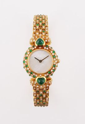 Montre de dame tout or avec boîtier rond en or jaune serti d…