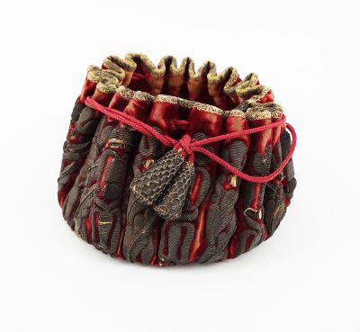 Bourse à motif de branchages brodés de fils d'argent sur fon…