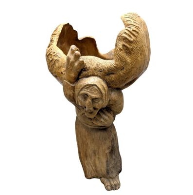 Étonnante sculpture scandinave monoxyle représentant une vie…
