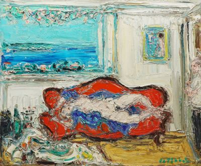 André COTTAVOZ (1922 - 2012) « Nu au canapé rouge »