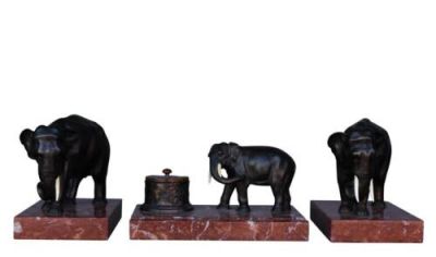 Nécessaire de bureau en bronze à décor d'éléphants en trois …