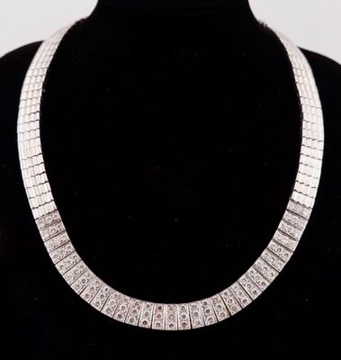 Important collier à mailles articulées en or blanc en partie…