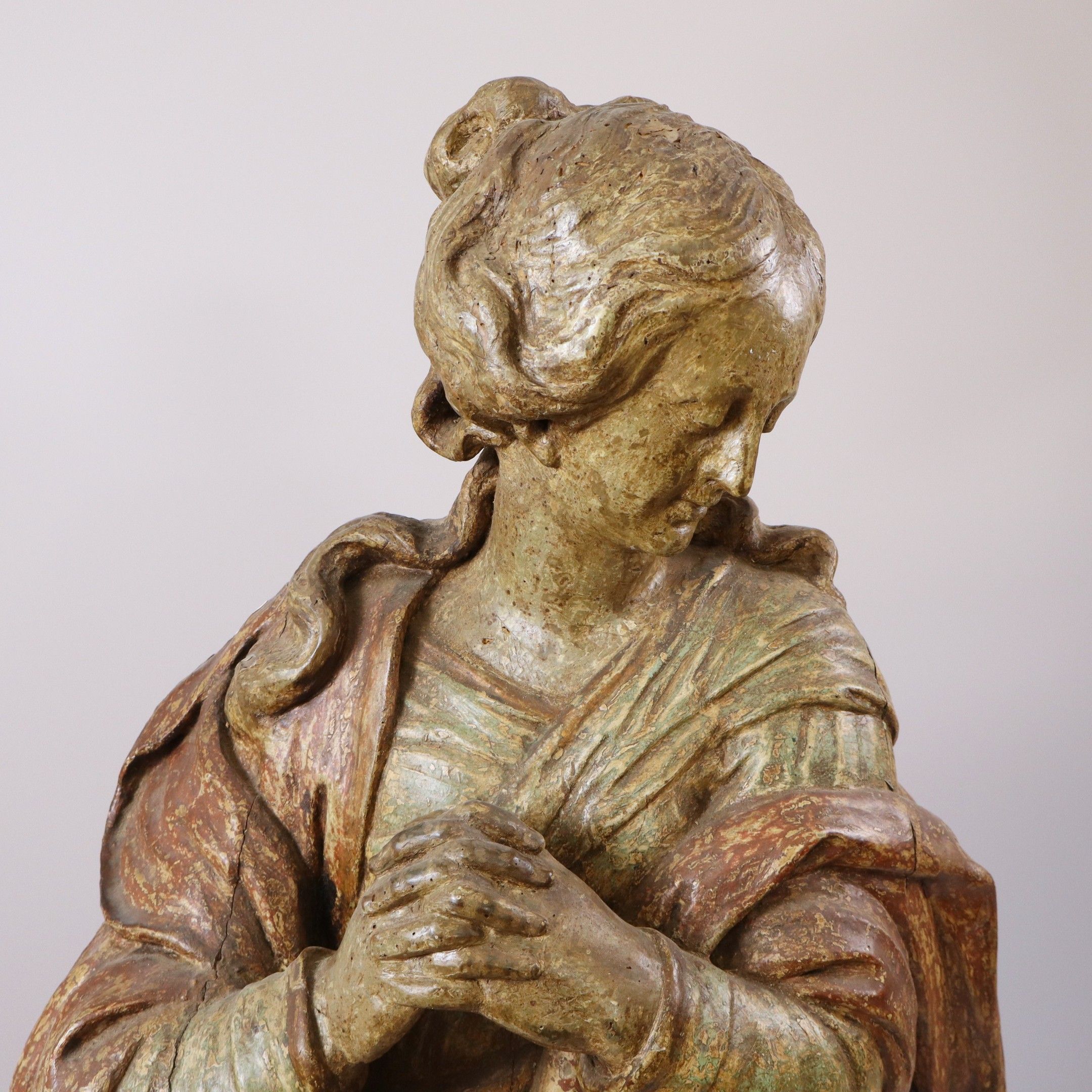 Premium Importante sculpture en bois polychrome, figurant une Sainte…