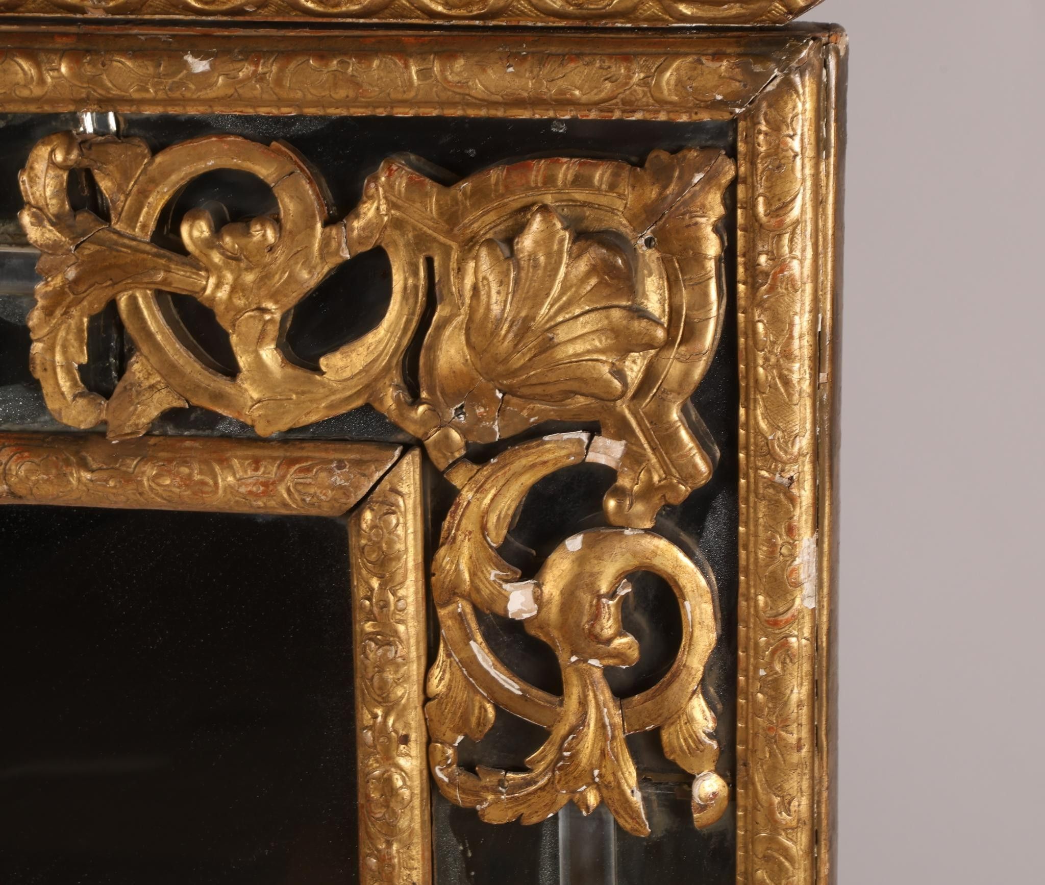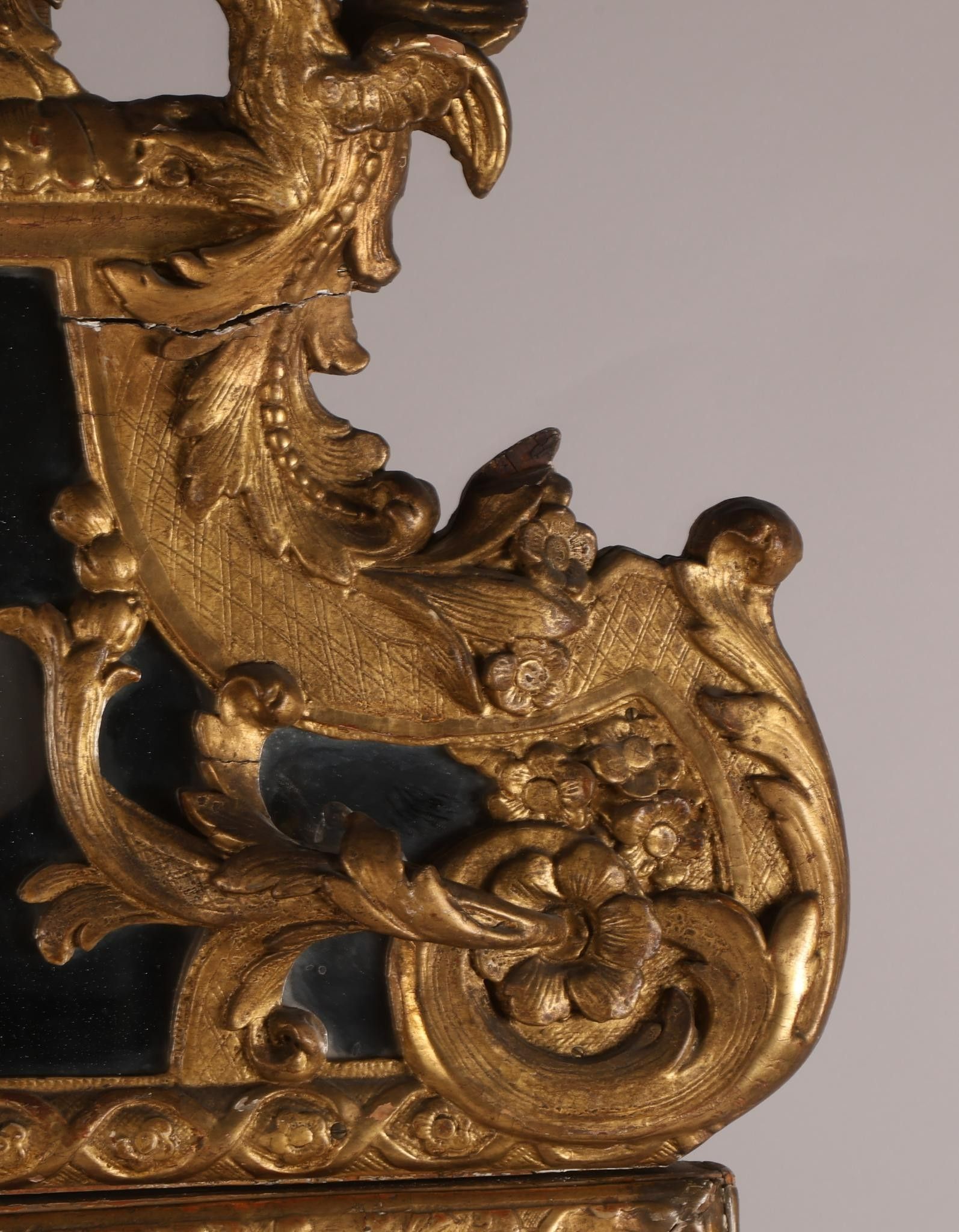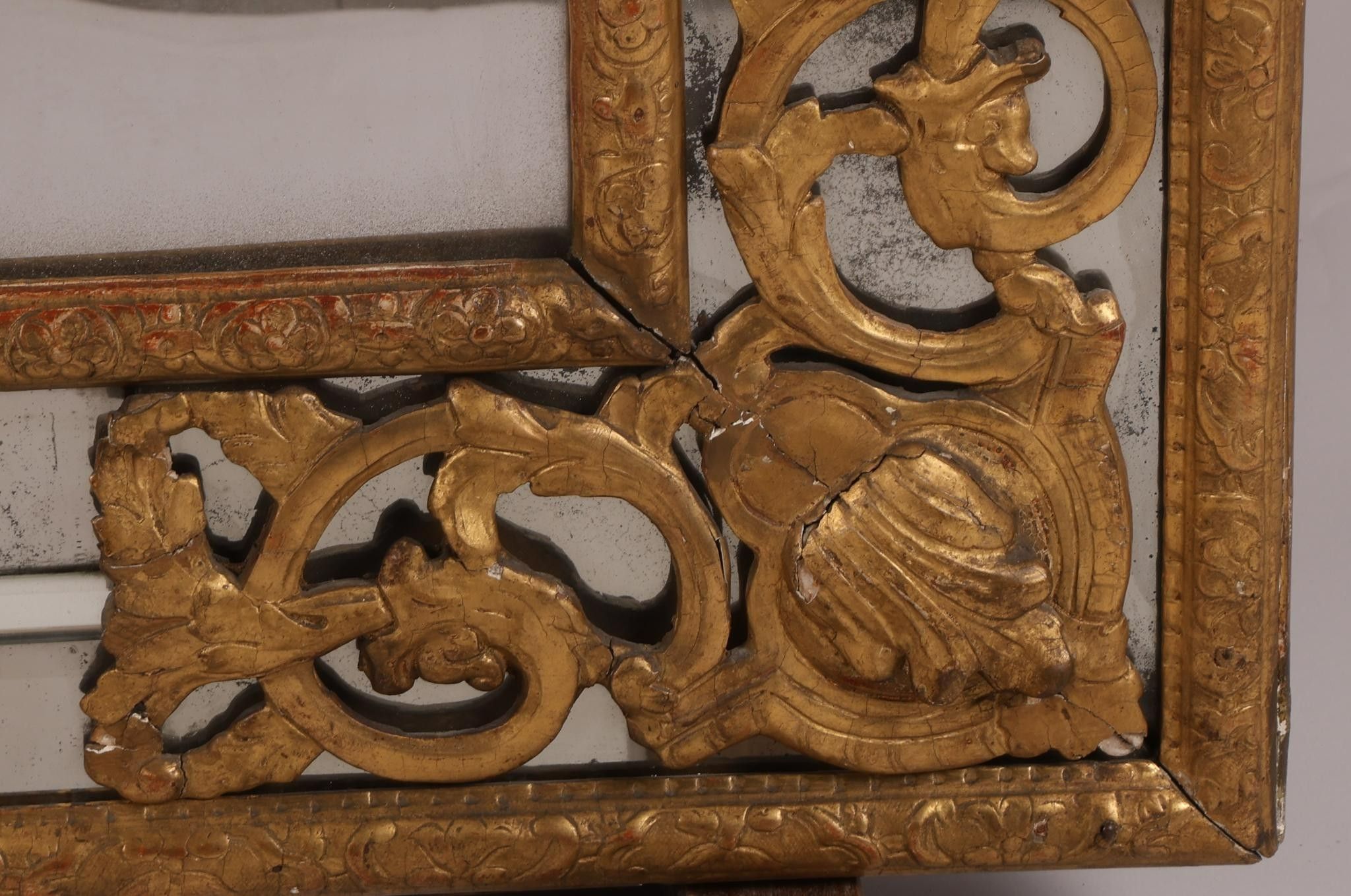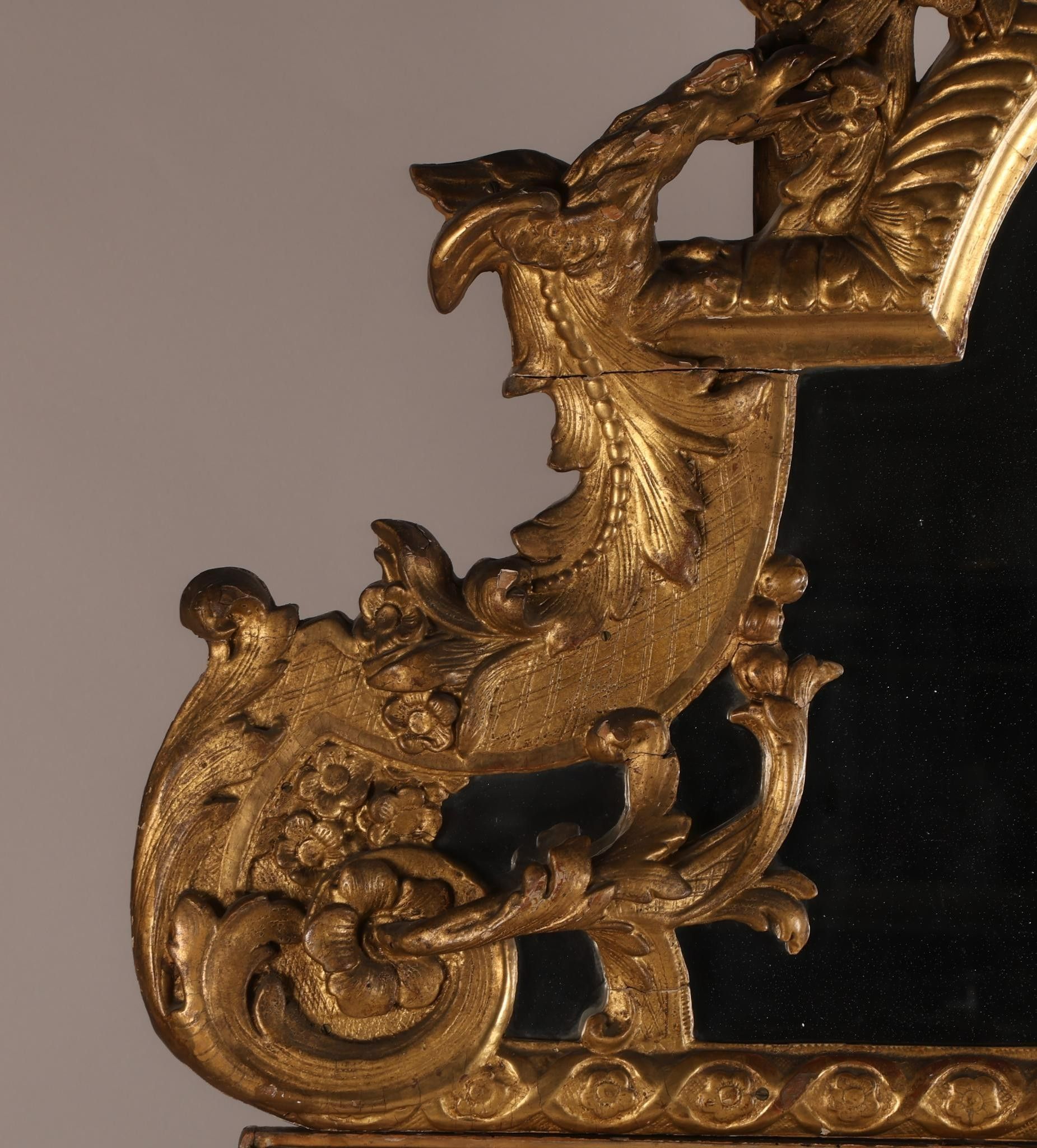Premium Important miroir à fronton et parcloses, en bois sculpté et …
