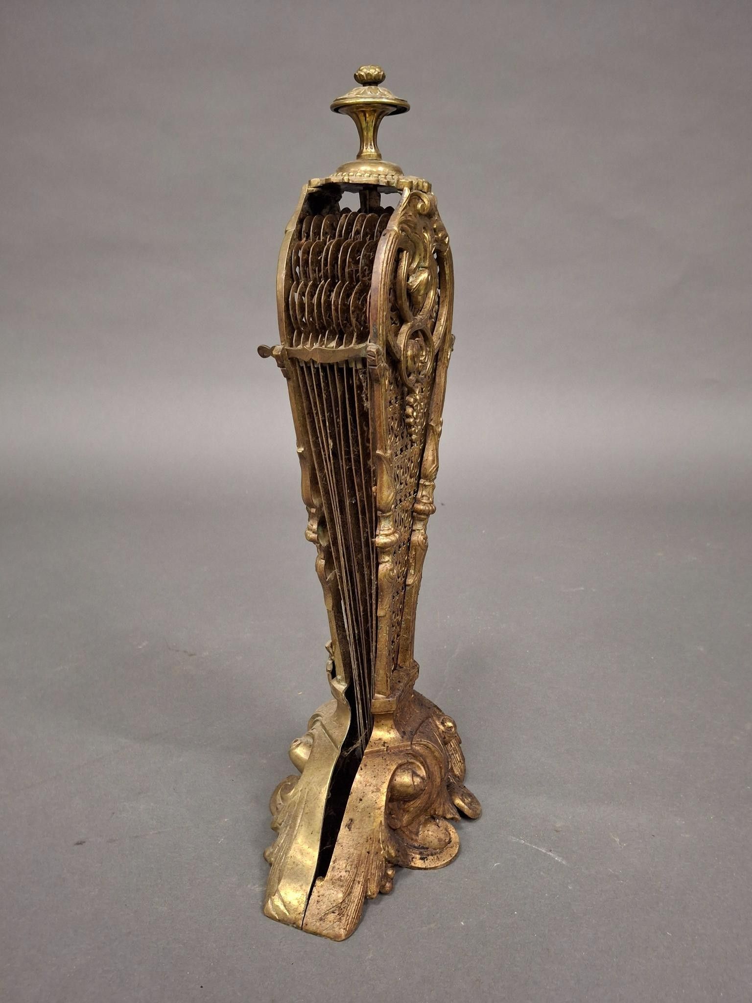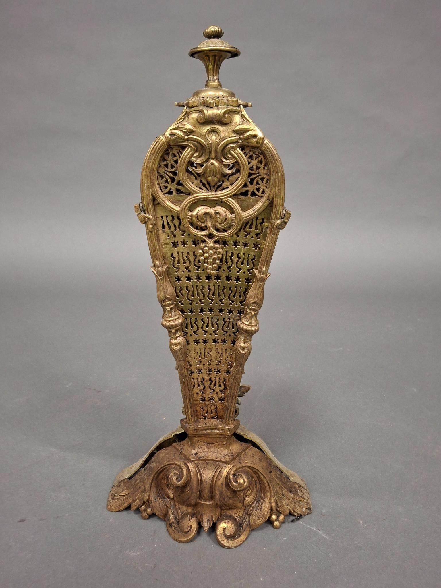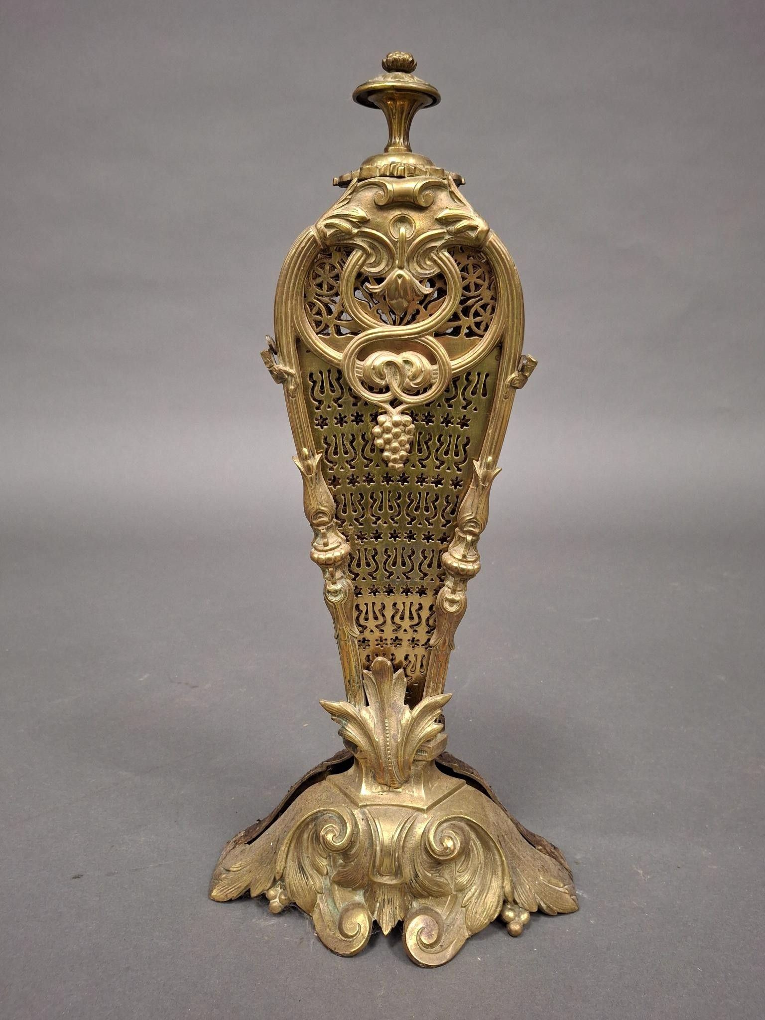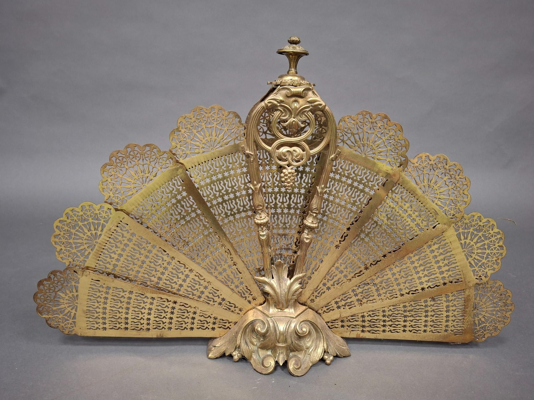 Ecran de cheminée en bronze et laiton en forme d'éventail à décor ajouré. Fin du XIXème s. H. 51 cm, L 25 cm et 79 cm déplié