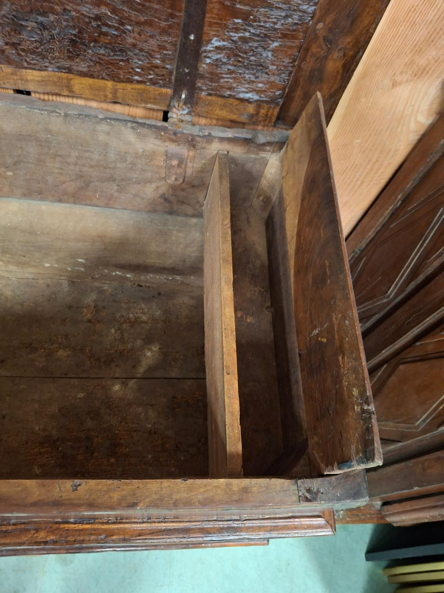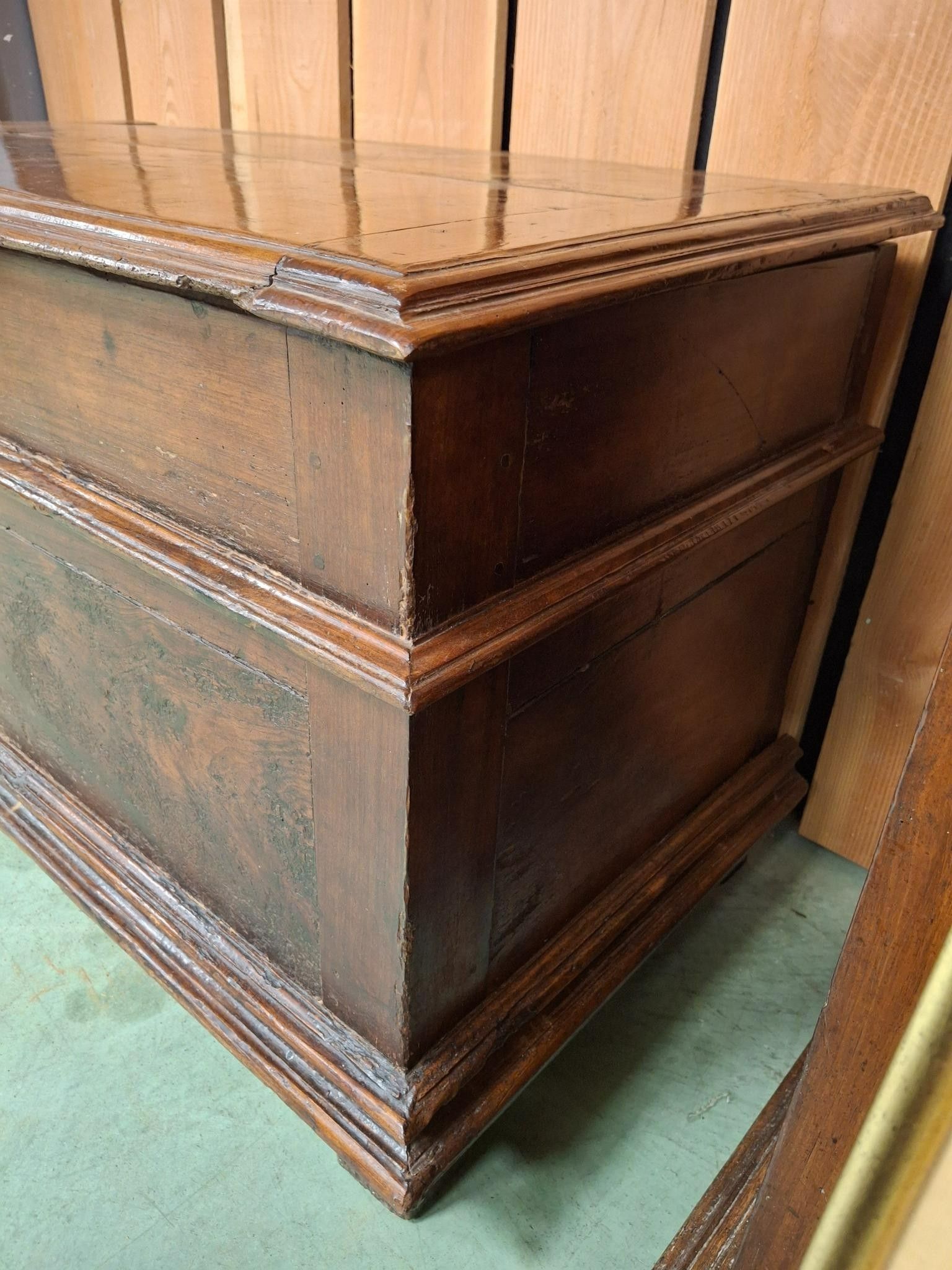 Coffre Perigourdin en noyer ciré. H. 77 cm, L. 127 cm, P. 65 cm (Restauré)