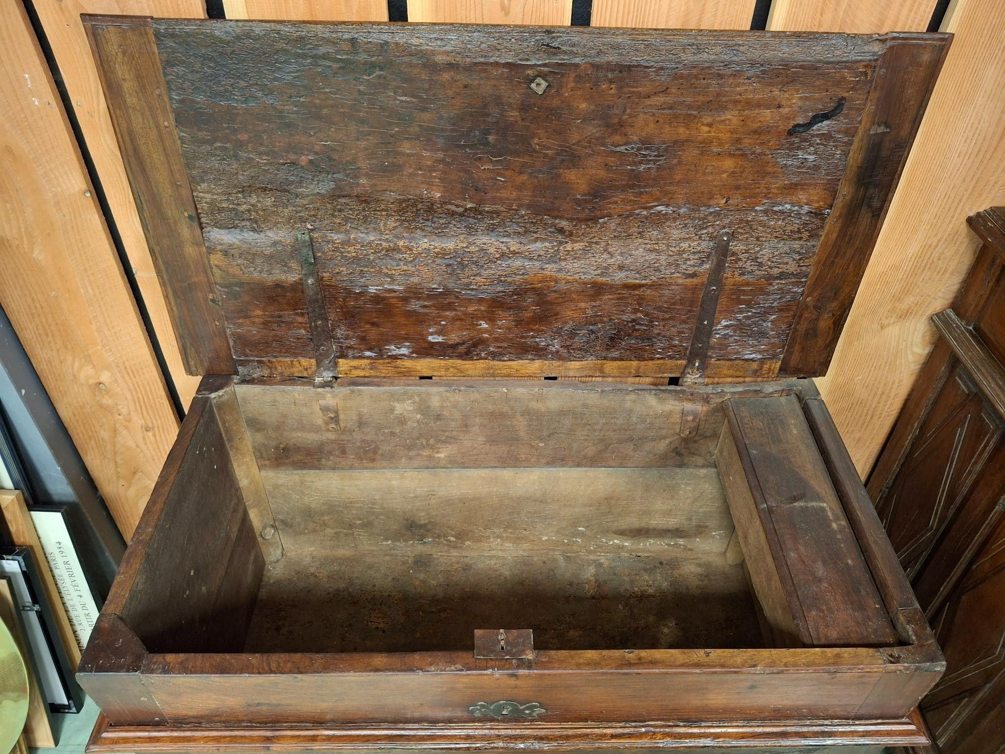 Coffre Perigourdin en noyer ciré. H. 77 cm, L. 127 cm, P. 65…