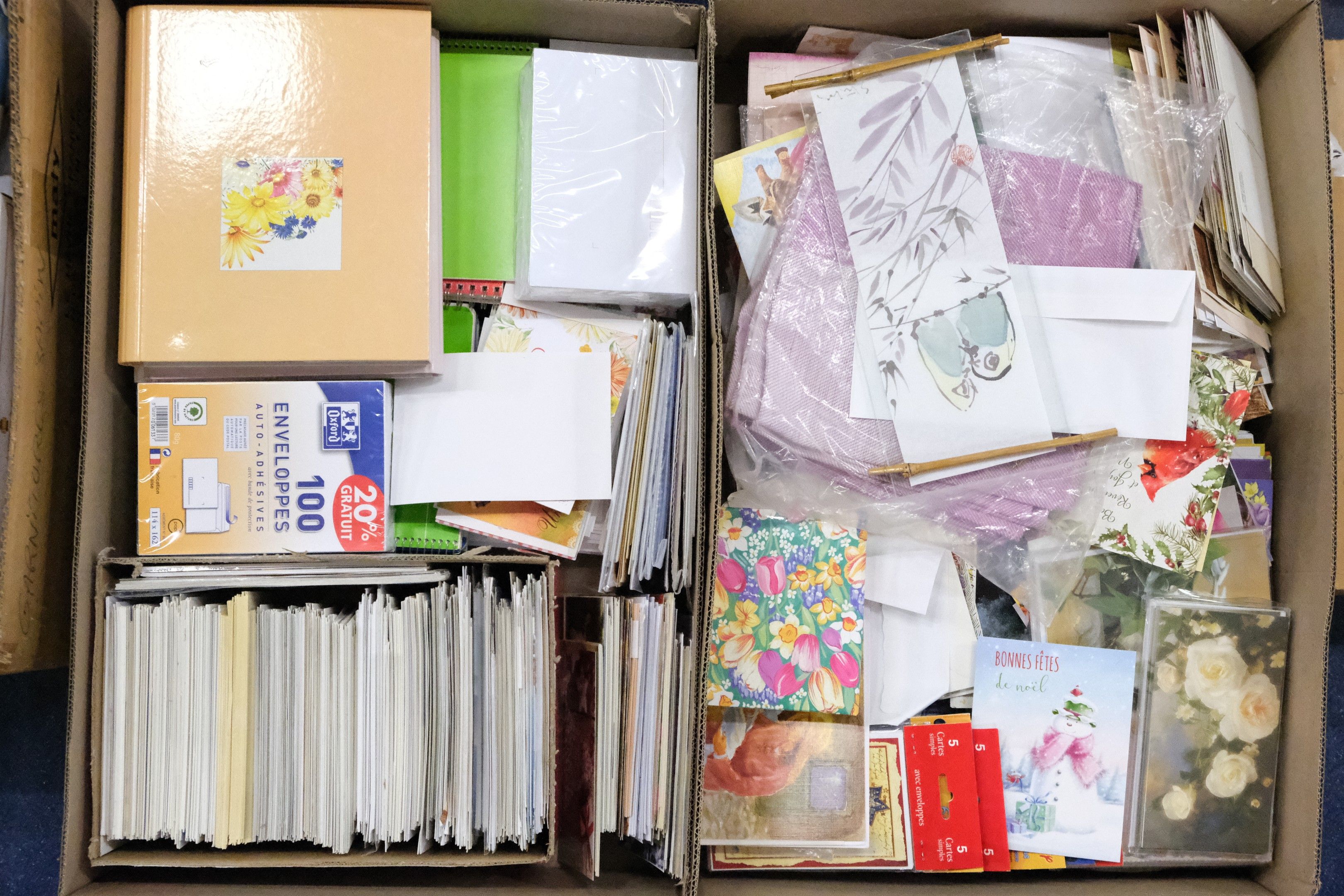 Lot de cartes, enveloppes, cahiers et divers (deux cartons).