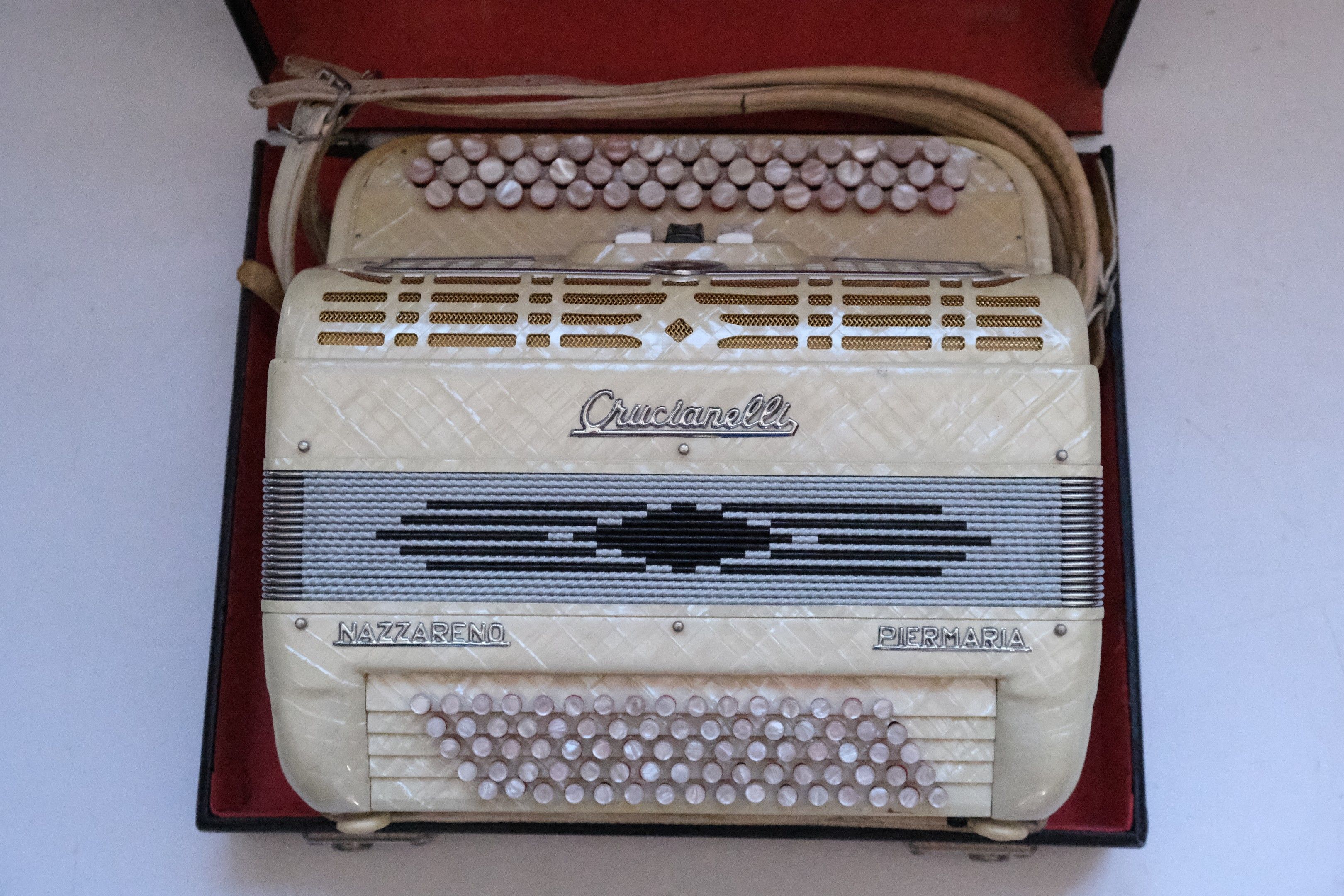 Accordéon chromatique CRUCIANELLI Nazzareno Piermaria avec sa boîte.