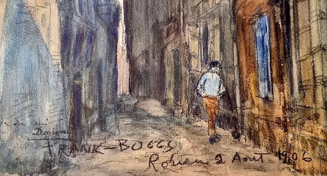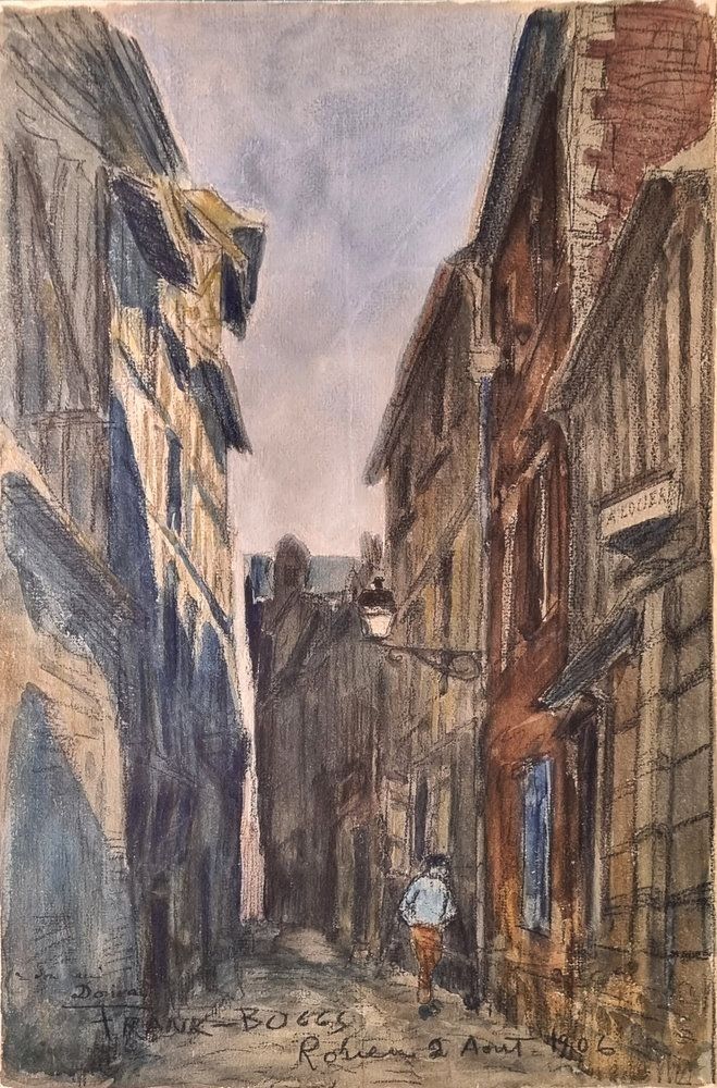 Frank Myers Boggs (1855 - 1926) était un peintre et graveur américain, surtout connu pour ses paysages urbains et ses vues de ports en France. Il est né à Springfield, dans l'Ohio, mais il passa une grande partie de sa vie en France. On retrouve aujourd'hui ses œuvres dans plusieurs musées prestigieux, dont le Musée d'Orsay à Paris, le Metropolitan Museum of Art à New York, et le Musée des Beaux-Arts de Rouen. Son fils, Frank-Will, devint également peintre.