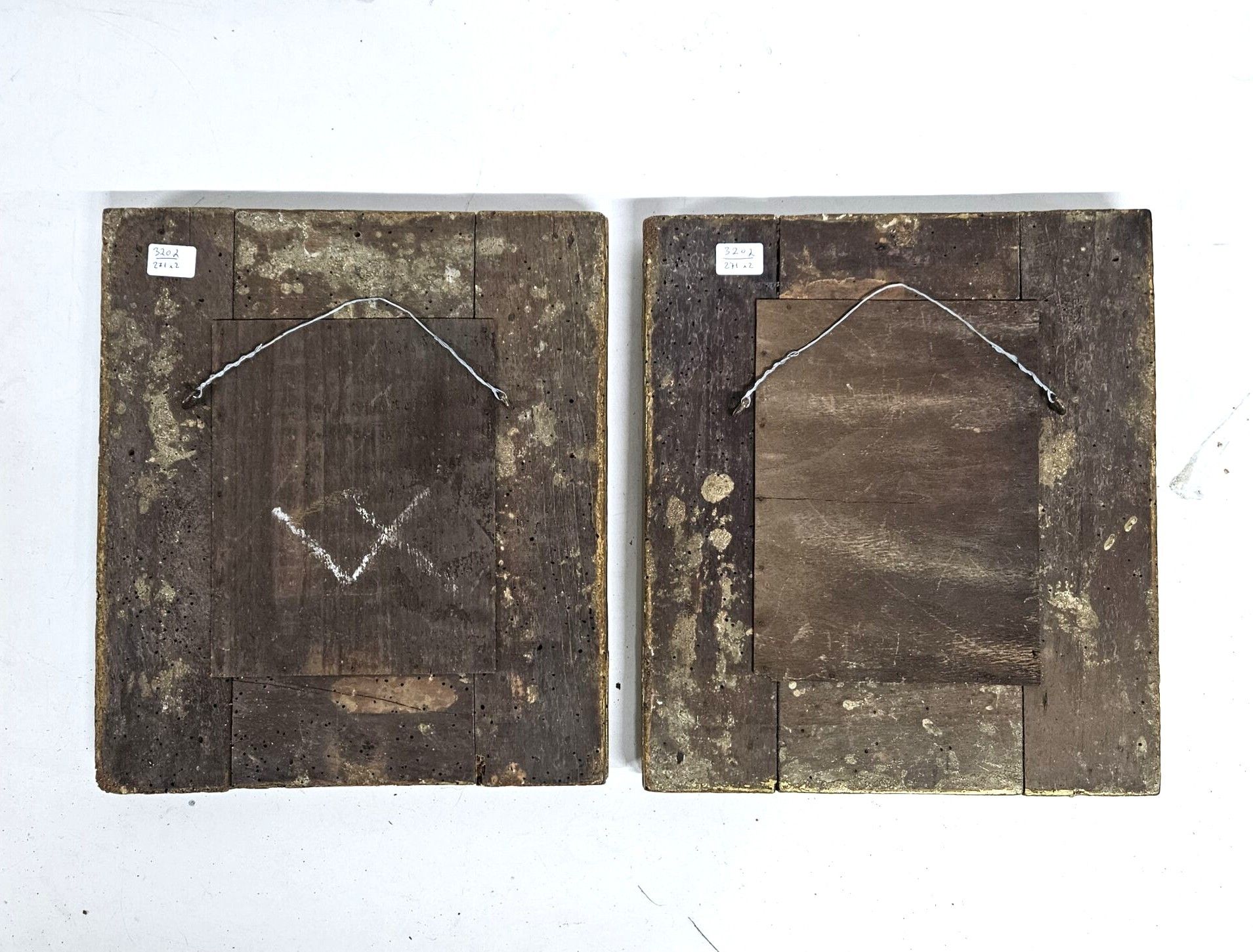 Premium Paire de petits miroirs en bois sculpté et redoré à décor de…
