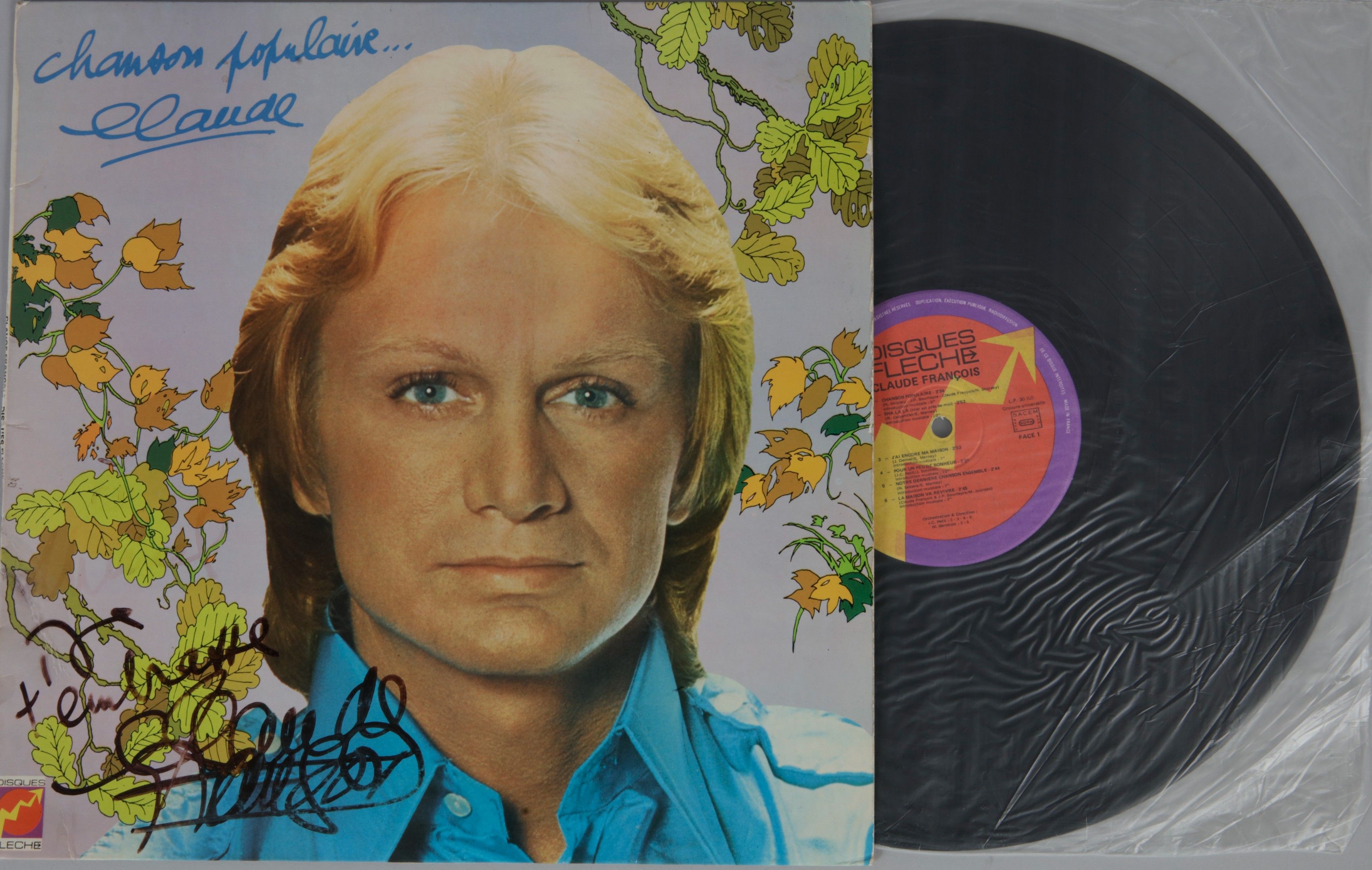 CLAUDE FRANÇOIS : Un disque original 33 tours vinyle de l’album « Chanson Populaire » publié en décembre 1973 aux Disques Flèche et dédicacé par l’artiste à l’issue d’une émission pour RTL.
