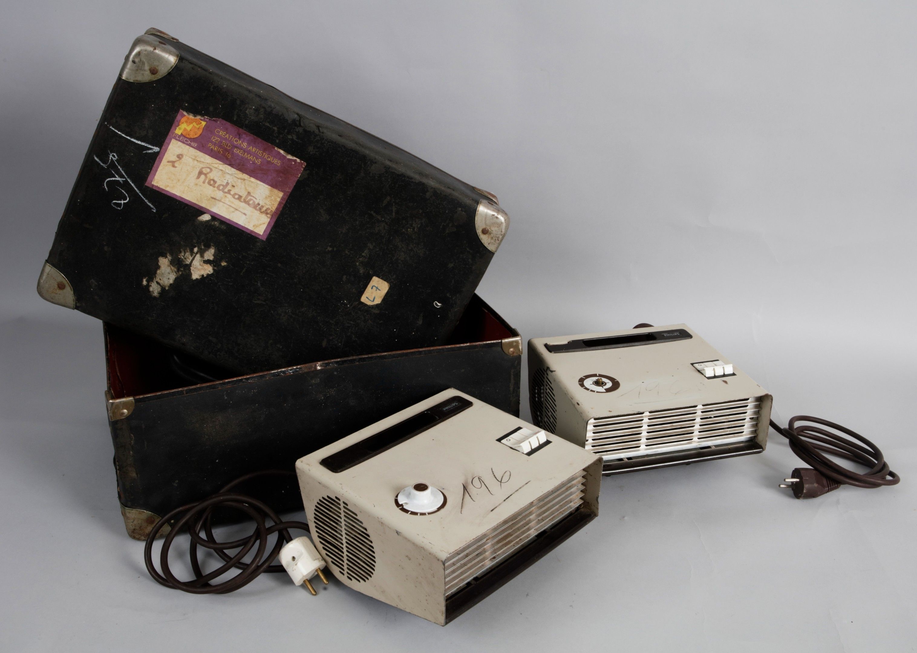 CLAUDE FRANCOIS : Une valise de loge originale, contenant 2 appareils de chauffage électrique, que le chanteur transportait et utilisait en permanence entre septembre 1975 et février 1978. 2 radiateurs Philips. Format valise 20x47 cm. Matériel historique de la loge de l’artiste. Origine : vente aux enchères de mai 1978, suite au décès de l’artiste. En l’état.