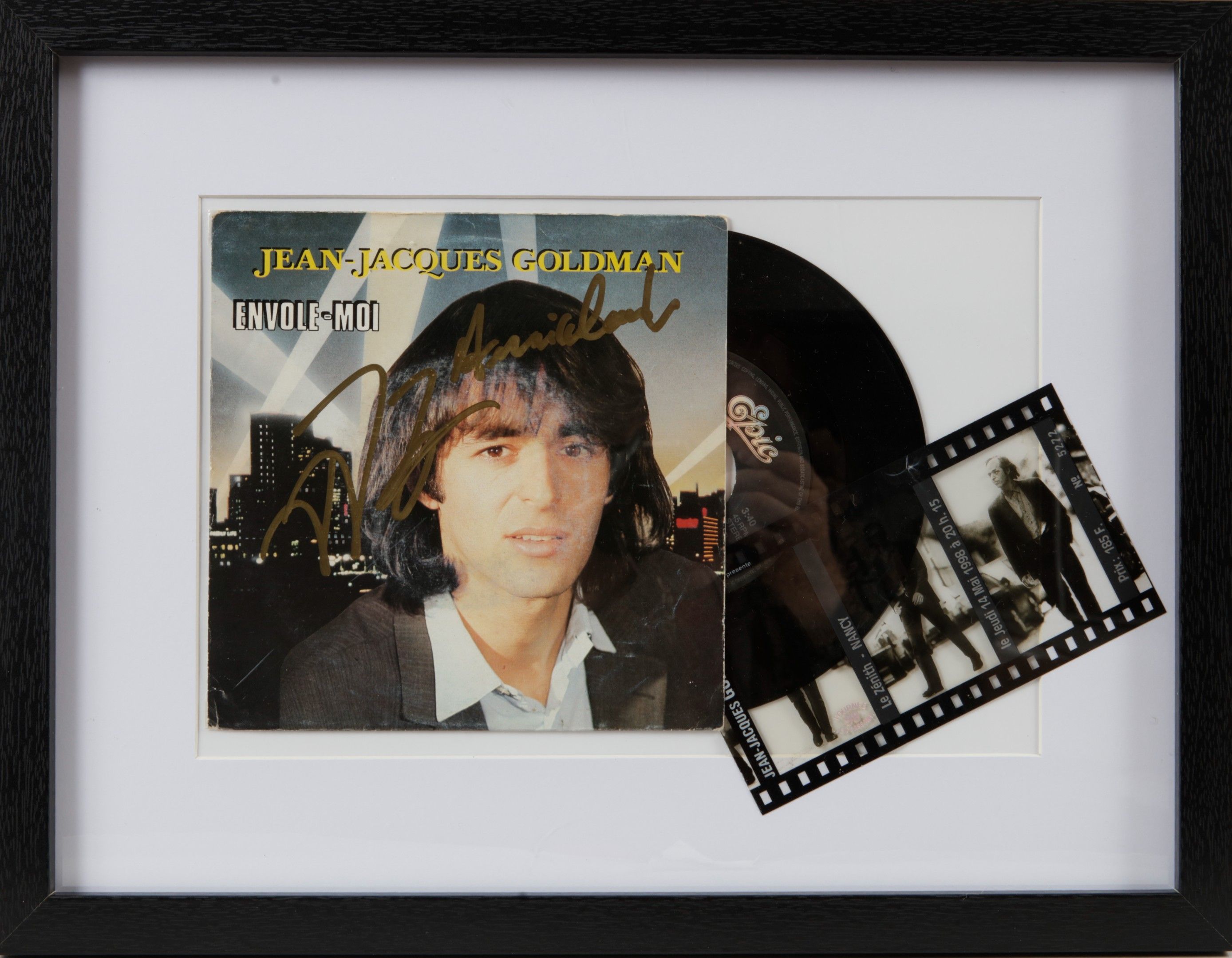 JEAN-JACQUES GOLDMAN (1951) : Un disque 45 tours vinyle « Envole-moi » publié en 1984 et dédicacé par l’artiste le 14 mai 1998 dans les coulisses du Zénith de Nancy. Bel état. On y joint, le ticket du concert.