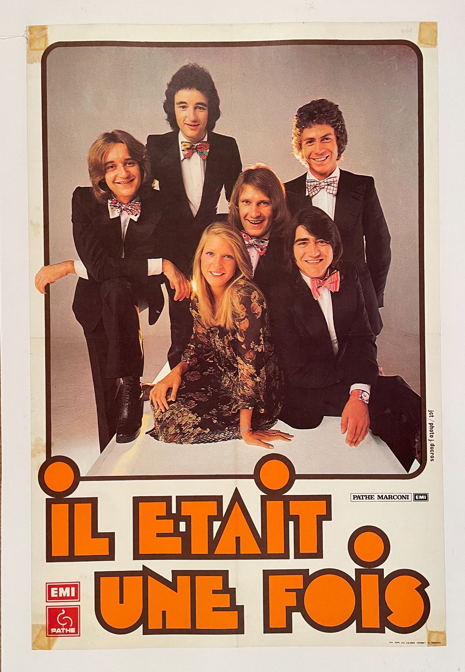 IL ETAIT UNE FOIS : Une affiche originale de 1974 du groupe pop variétés. Formé en 1971 et composé de 6 membres : Serge Koolenn, Richard Dewitte, Lionel Gaillardin, Daniel Schnitzeer, Jean-Louis Dronne… et Joelle Mogensen. Format 40x60 cm. Affiche entoilée. Quelques traces de scotch aux quatre coins de l’affiche.