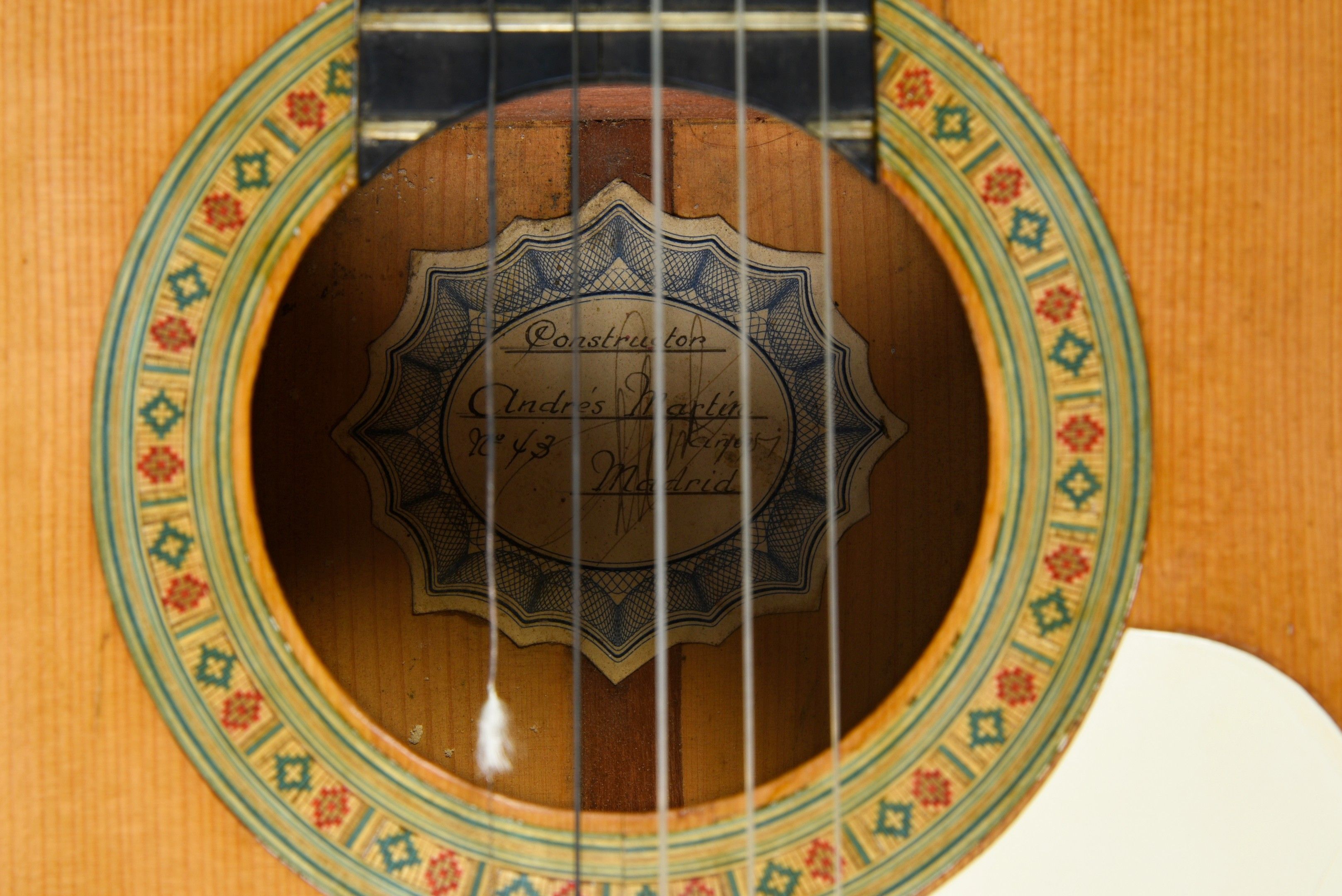 FRANCIS LEMARQUE (1917/2002) : Une guitare classique de fabrication Andrés Martin à Madrid, signée et numéroté N°43, en 1962. Francis Lemarque acheta cette guitare chez Alain Vian, le frère de Boris Vian qui était luthier à Paris. C’est sur cette guitare qu’on été composées de nombreuses chansons dont « Quand un soldat », « Paris se regarde », « Ecoutez la balade »… C’est aussi avec cette guitare qu’il se produisait dans des émissions de télévision pour jouer ses succès : « A Paris », « Mathilda » ou « Le temps du muguet ». Bon état dans son étui et sa housse d’étui.