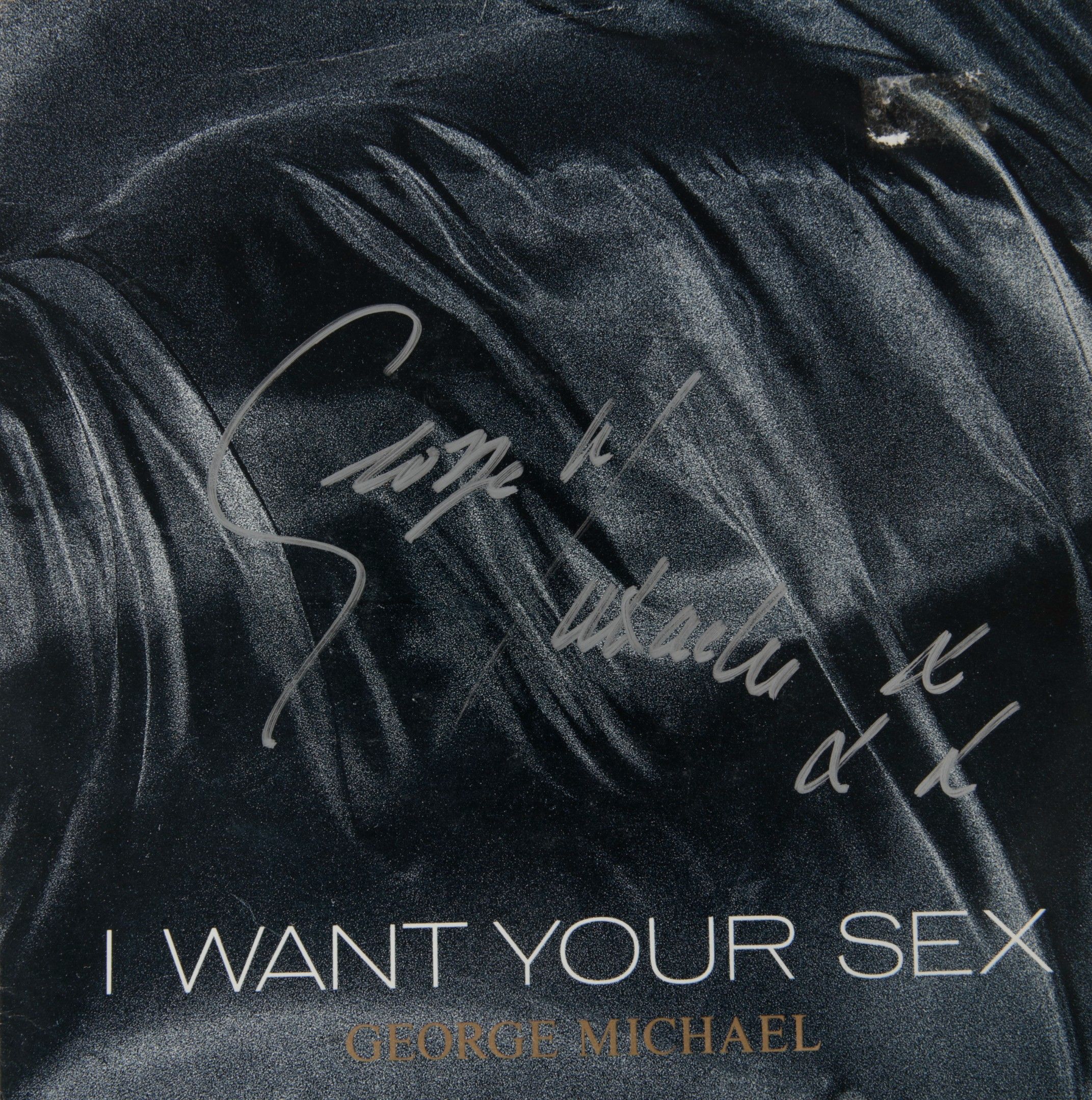 GEORGE MICHAEL (1963/2016) : Un disque 45 tours vinyle original « I want your sex », dédicacé par l’artiste en 1987. Bel état.