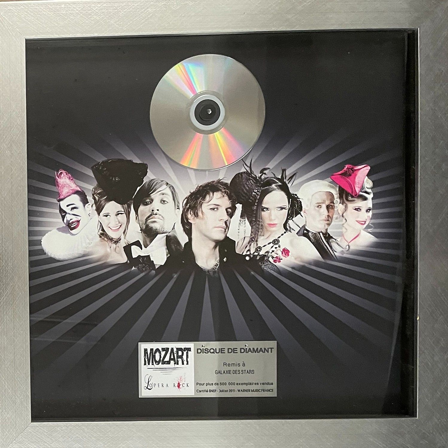 MOZART L’OPERA ROCK : Un disque de diamant pour l’album « Mozart l’Opéra Rock » vendu à plus de 500.000 exemplaires en France. Certifié par le Snep en juillet 2011. Format 46x46 cm. Warner Music France.