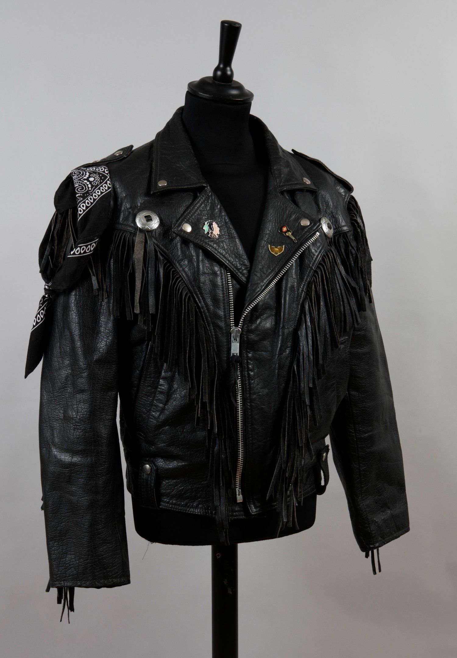 Premium JOHNNY HALLYDAY : Un blouson en cuir noir, modèle à franges …