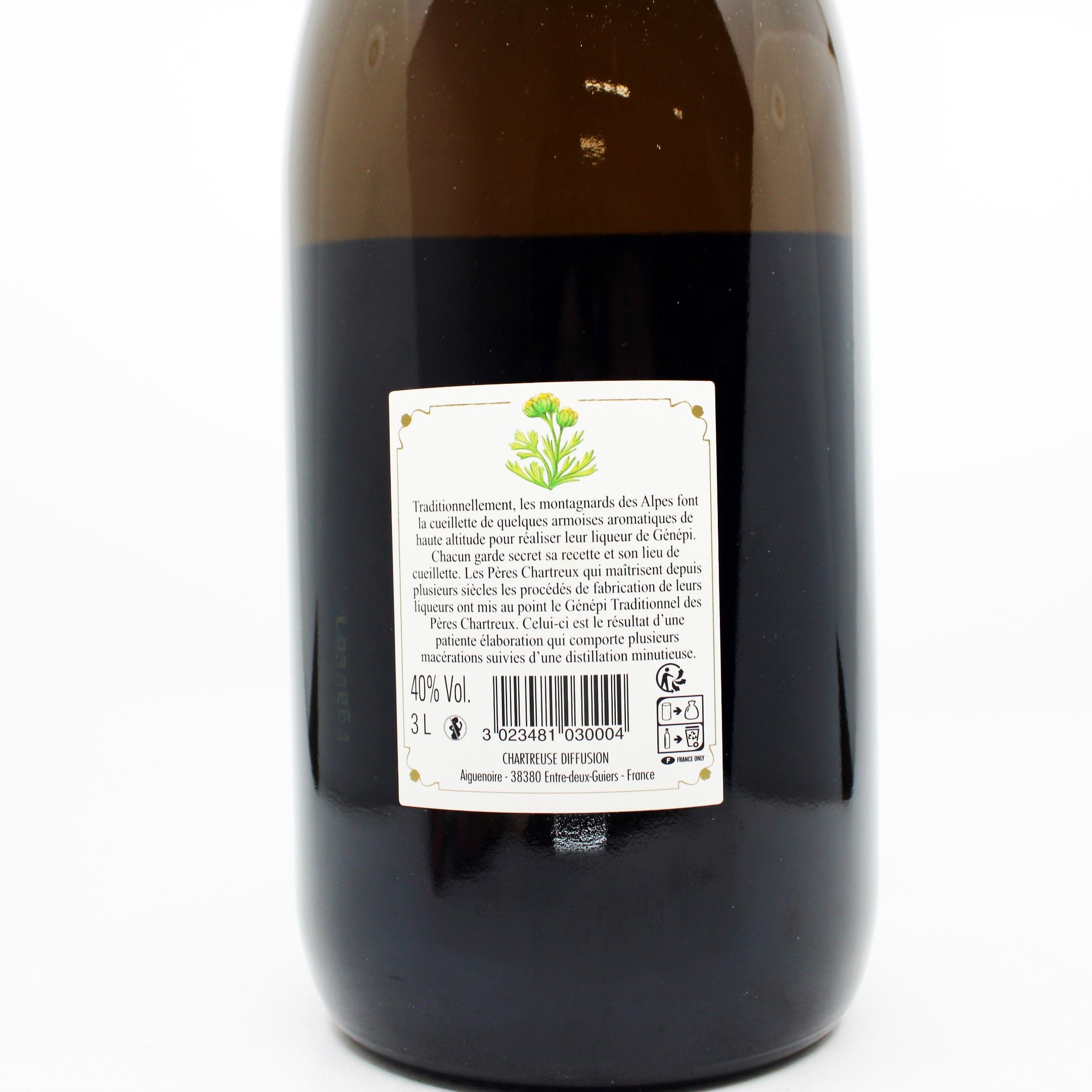 1 JEROBOAM LIQUEUR GENEPI TRADITIONNEL Mise 2022 Année : NM Appellation : Pères Chartreux Titrage : 40% Contenance : 300 cl Conditionnement : Sans Observation : Carton d'emballage