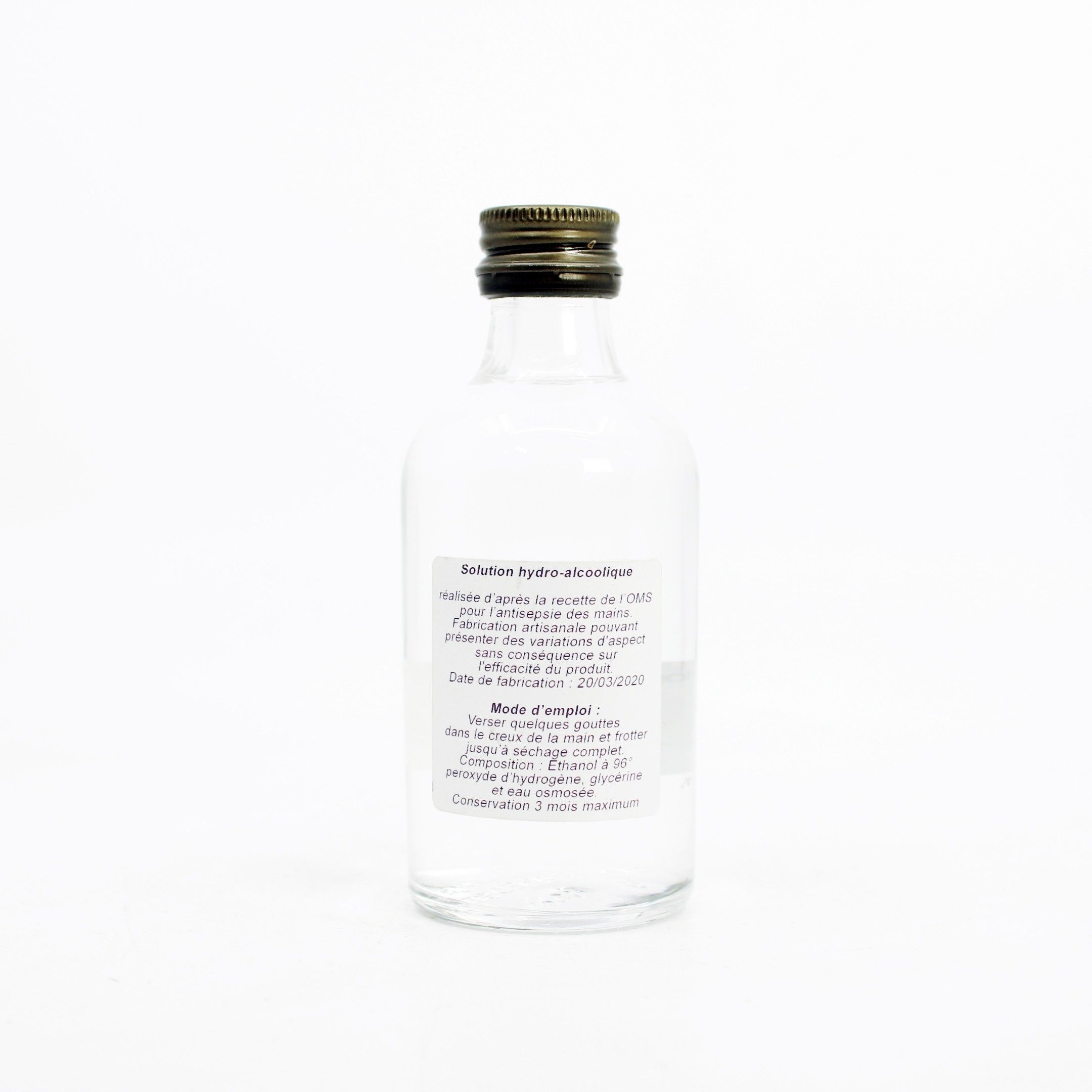 Observation : Flacon de gel hydro-alcoolique offert par la société Chartreuse. Produit destiné à l'antisepsie des mains selon la recette de l'OMS