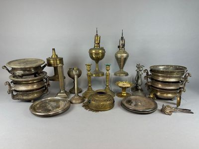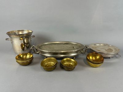 Lot en MÉTAL ARGENTÉ comprenant : petite verrière, trois suc…