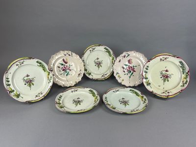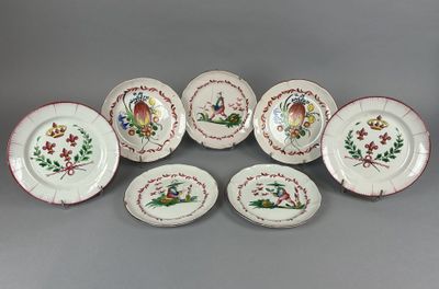 LUNEVILLE XVIIIème - XIXème s. - Suite de CINQ ASSIETTES à b…