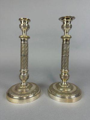 Paire de BOUGEOIRS posant sur des bases circulaires en métal…