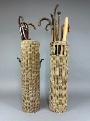 Paire de petits PORTE-FOUETS cylindriques en osier, l'un ave…
