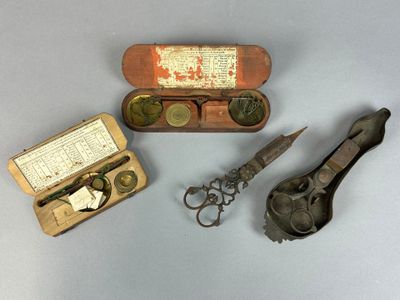 Réunion de deux TREBUCHETS et deux paires de MOUCHETTES, l'u…