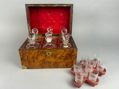 COFFRET à liqueurs rectangulaire en placage de loupe d'amboi…