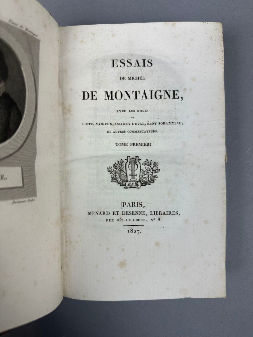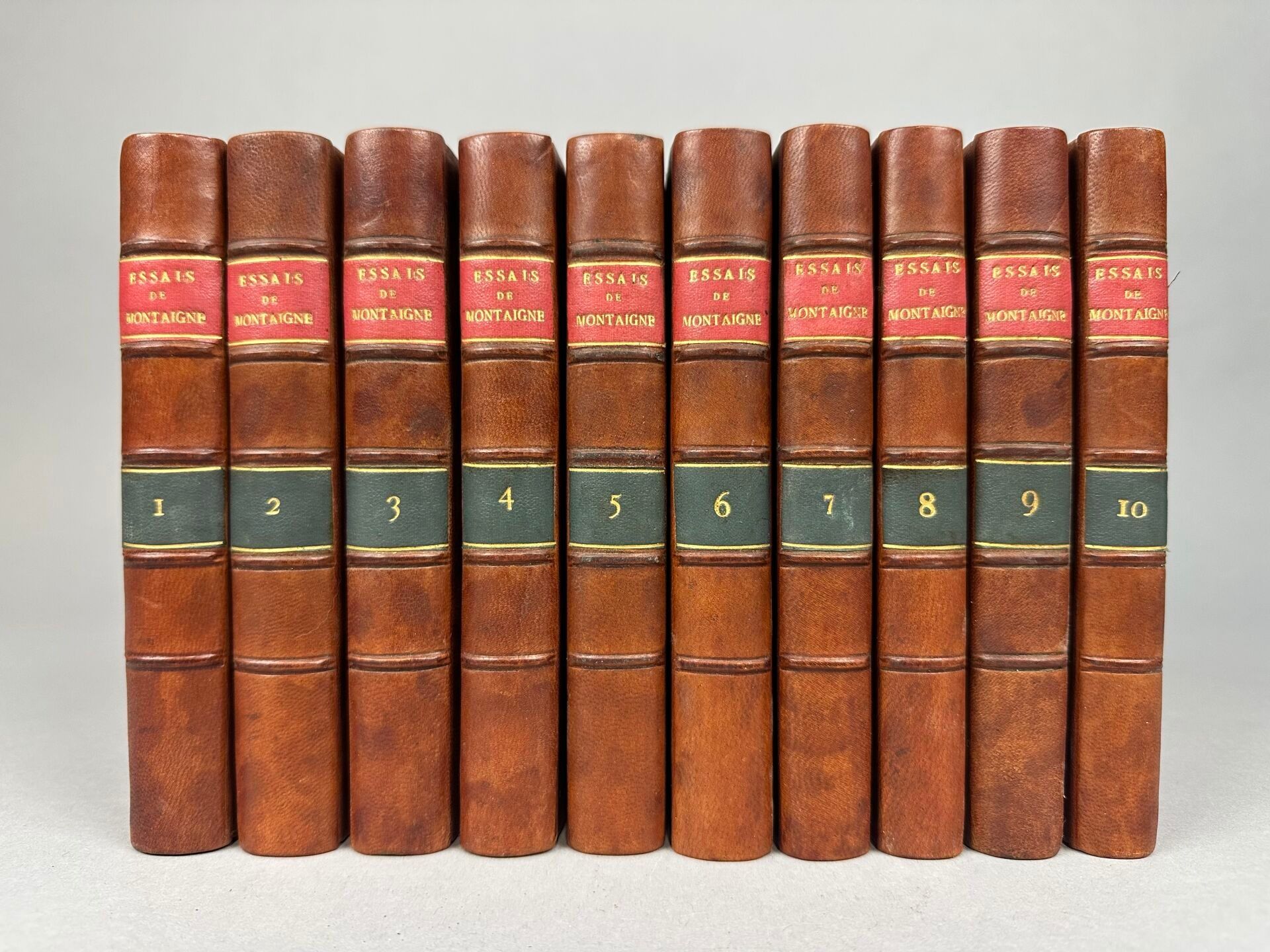 MONTAIGNE - Essais de Michel de Montaigne, avec les notes de Coste, Naigeon Amaury Duval. Paris, Ménard et Desenne, 1827. 10 vol. in-12, demi-reliure. Ex-libris comte de Malherbe. Usure d'usage.