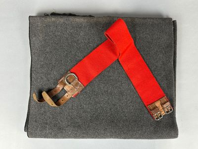 Lot : CEINTURE de force rouge, à sangles en cuir brun ; TAPI…