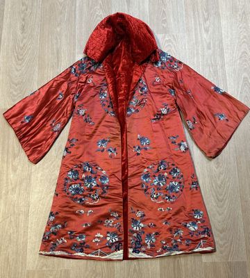 CHINE, début XXe siècle - ROBE en soie rouge brodée de fils …