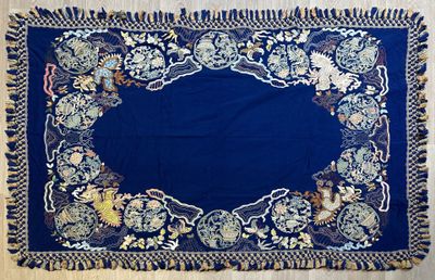 CHINE, fin XIXe siècle - CHÂLE en feutre bleu à décor brodé …