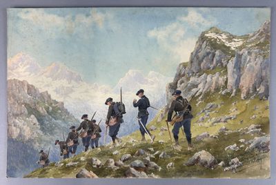 A. BERNARD THIERRY, XXème siècle - Chasseurs alpins marchant…