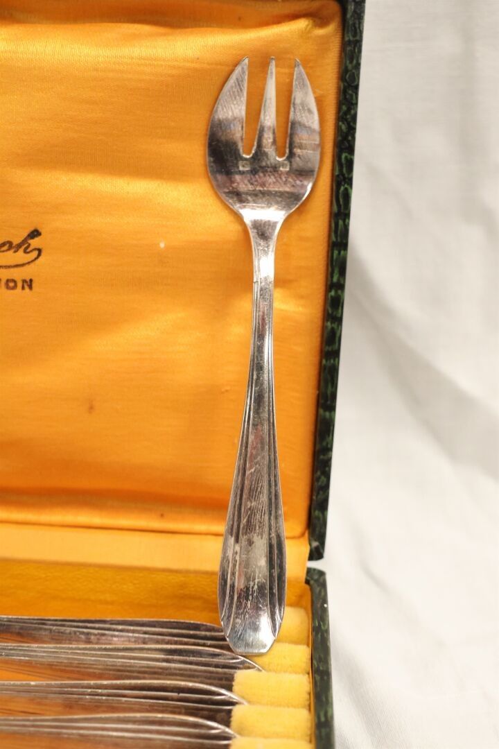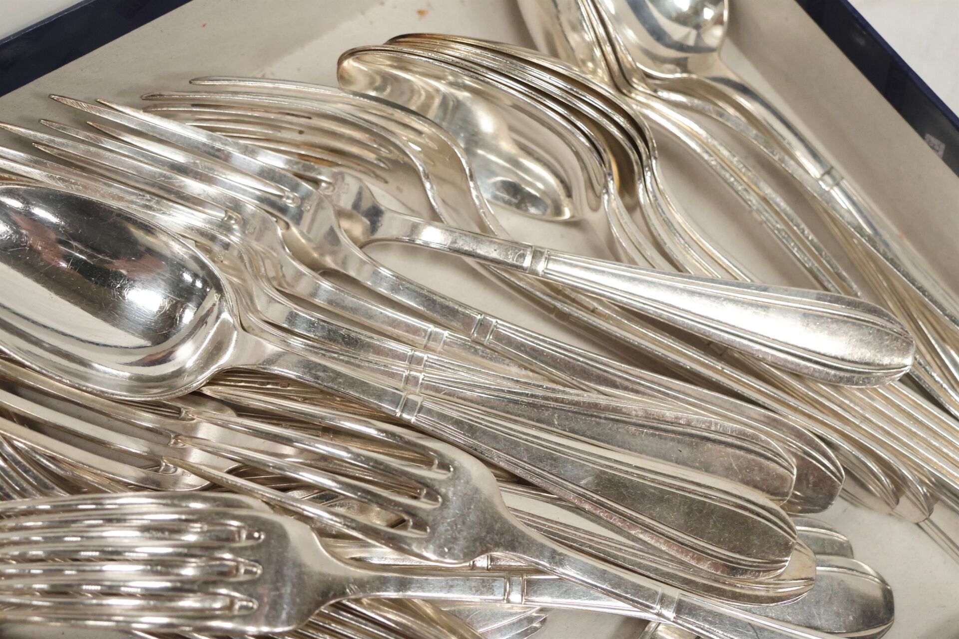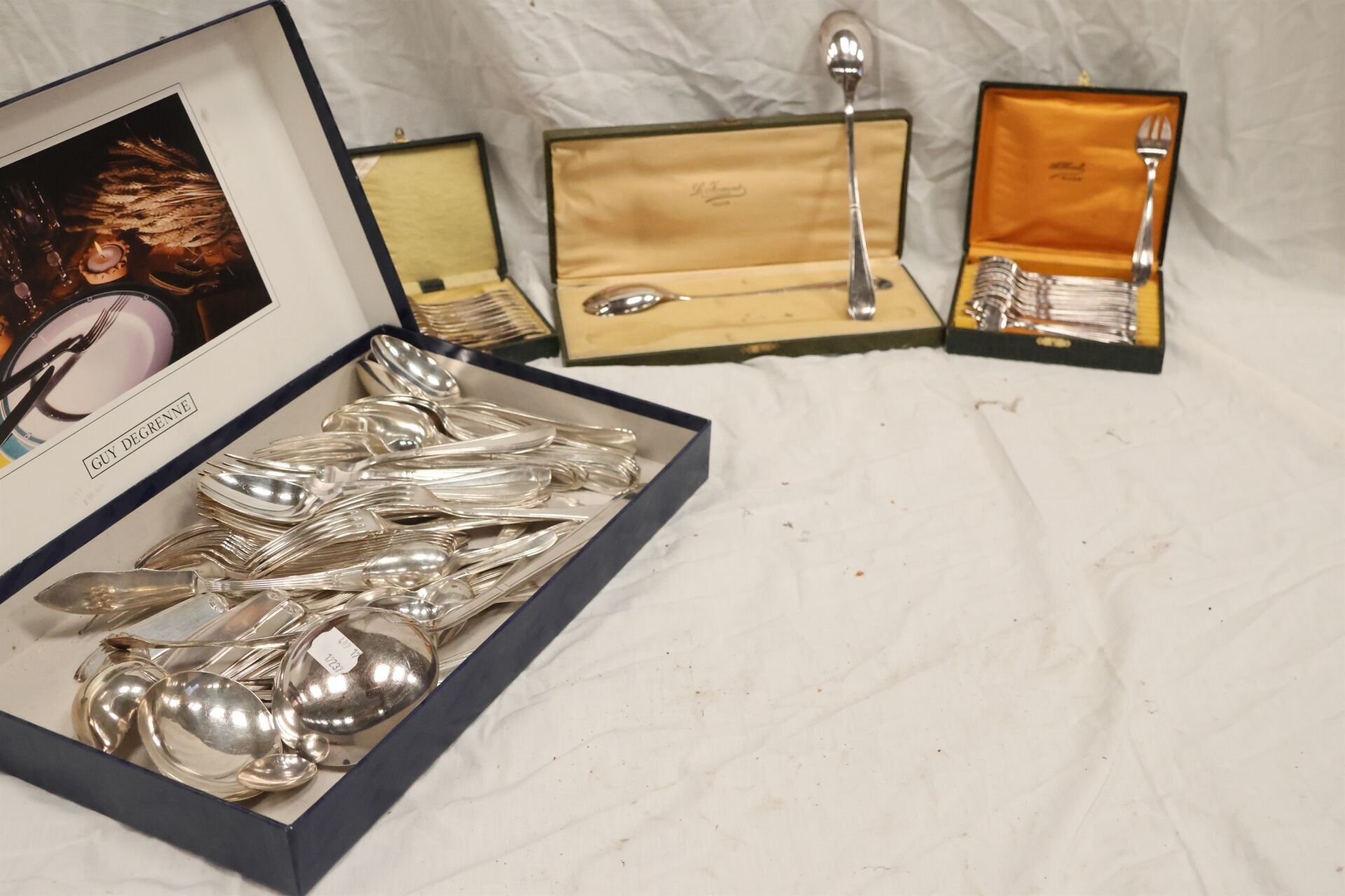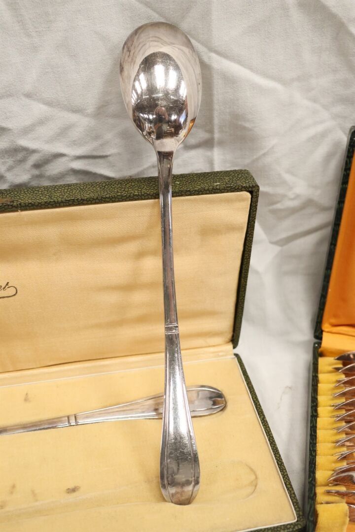 Partie de ménagères en métal argenté + coffret de fourchettes de modèle différent