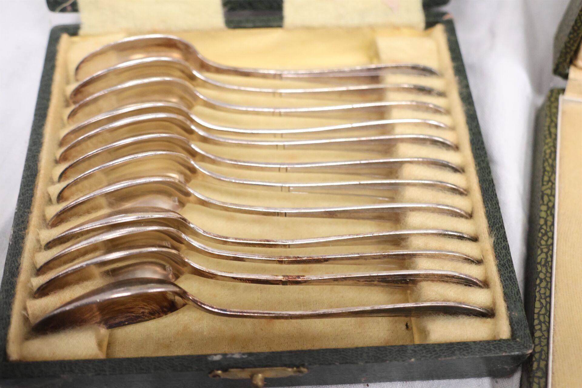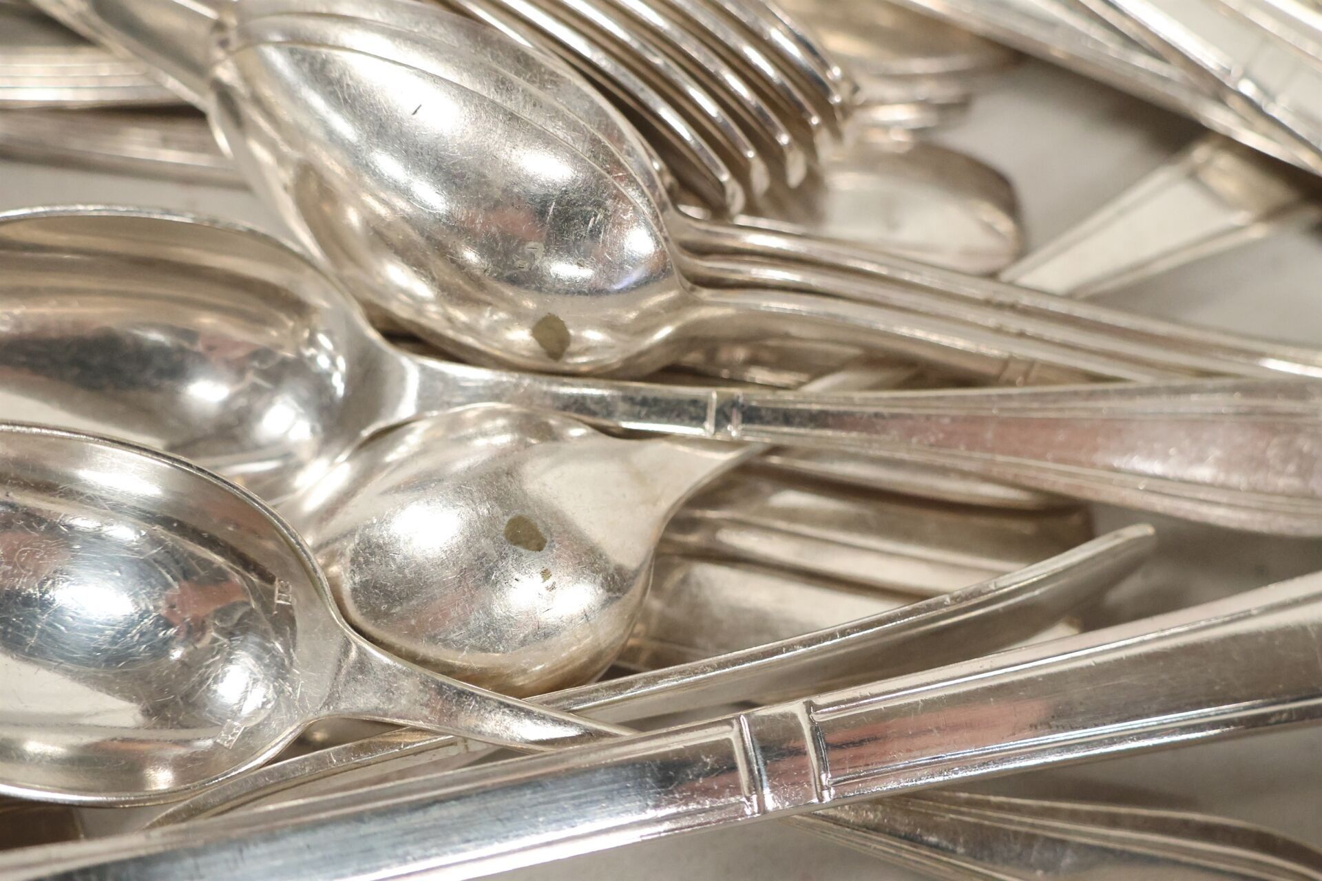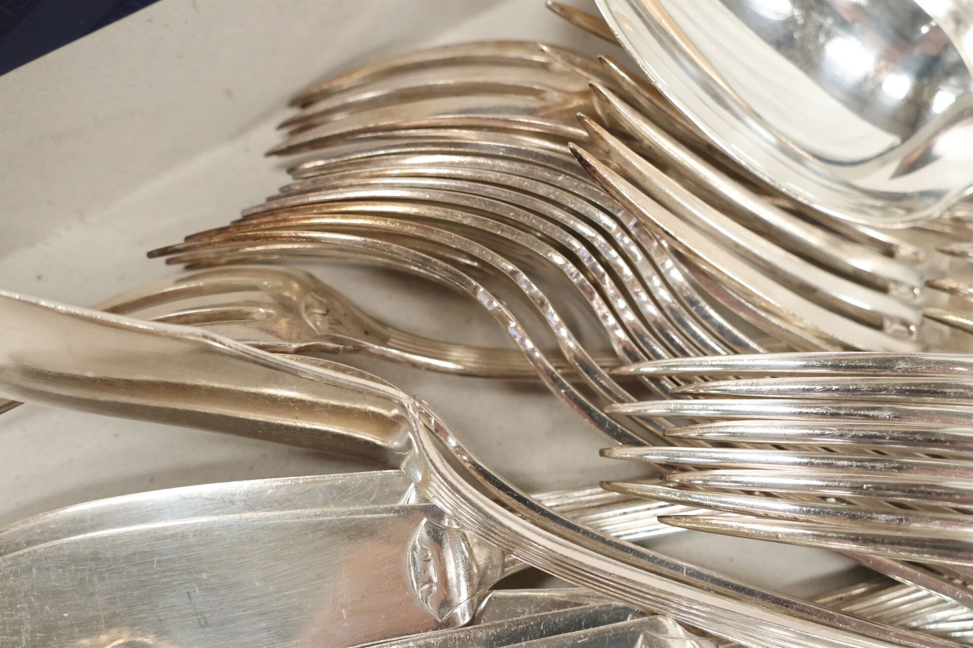 Partie de ménagères en métal argenté + coffret de fourchettes de modèle différent