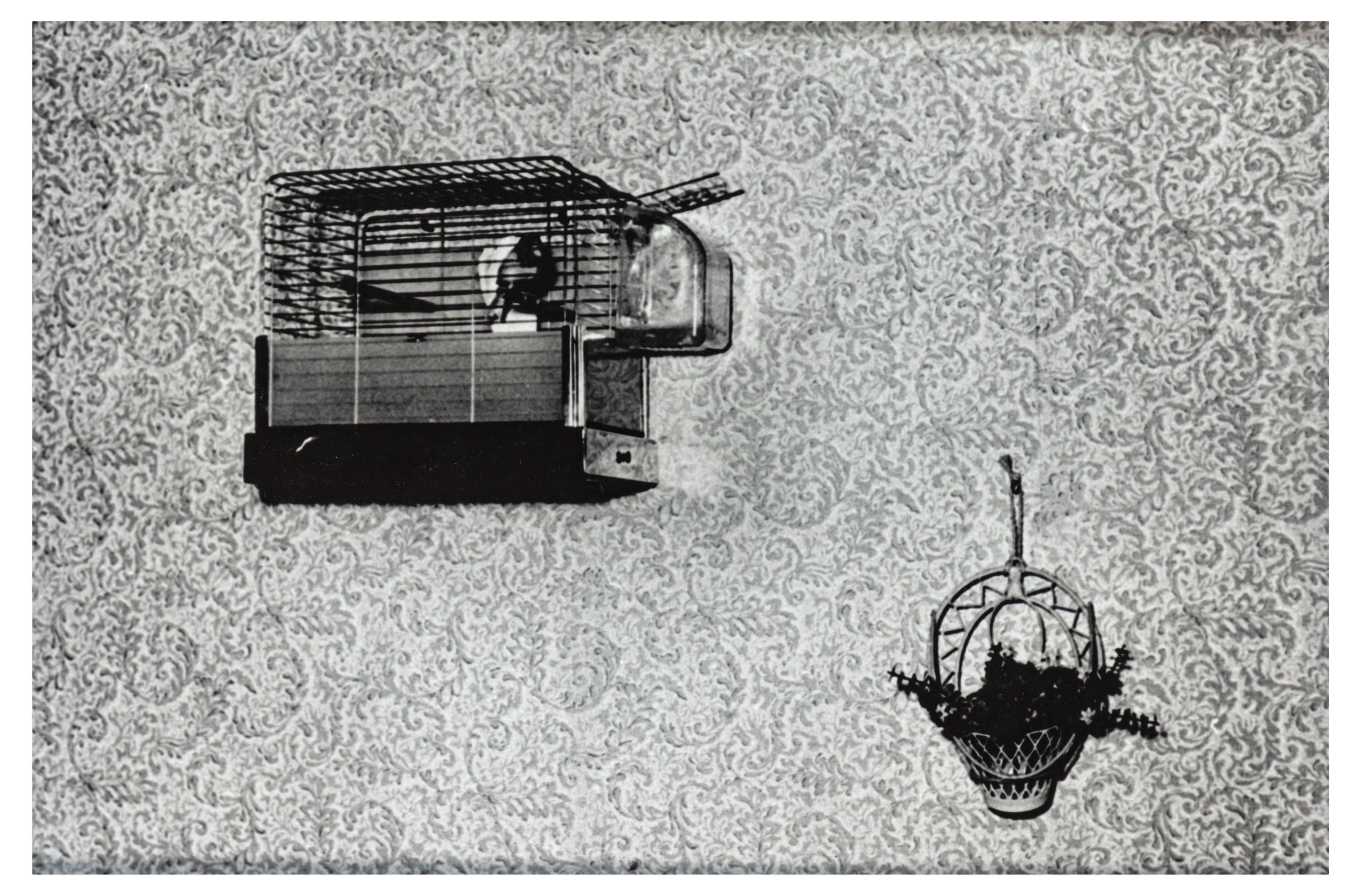 Photographie en noir et blanc encadrée, lampe et fil électrique (manque la boîte en métal)
