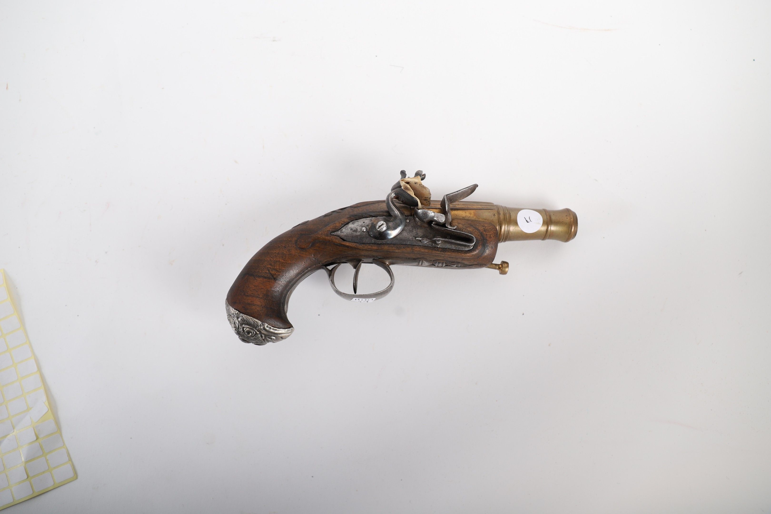 Premium PISTOLET DE CARROSSE A SILEX. Canon en bronze à pans puis ro…