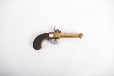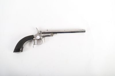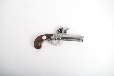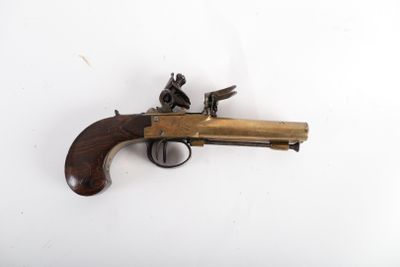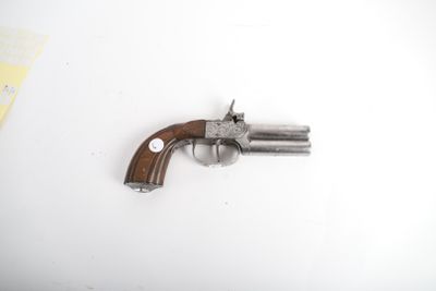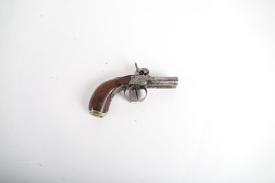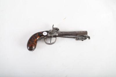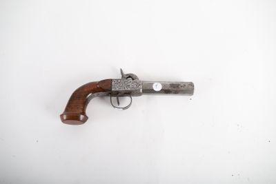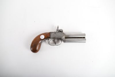 PISTOLET A COFFRE A DOUBLE CANONS, A PERCUSSION.